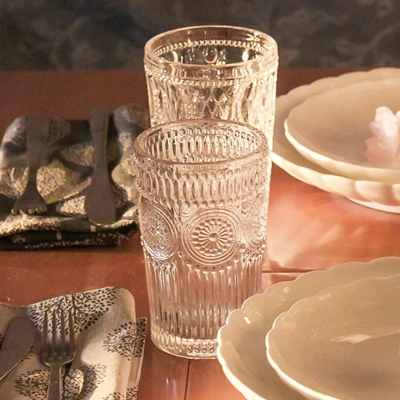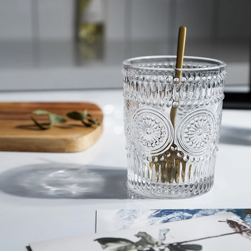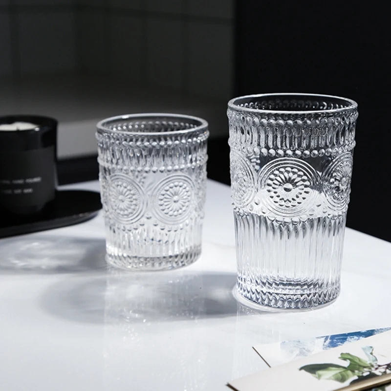 Винтажная Выгравированная подсолнухая Однослойная стеклянная чашка, чайная кружка, стеклянная чашка, стеклянная чашка, чашка для питьевой воды для дома, бара