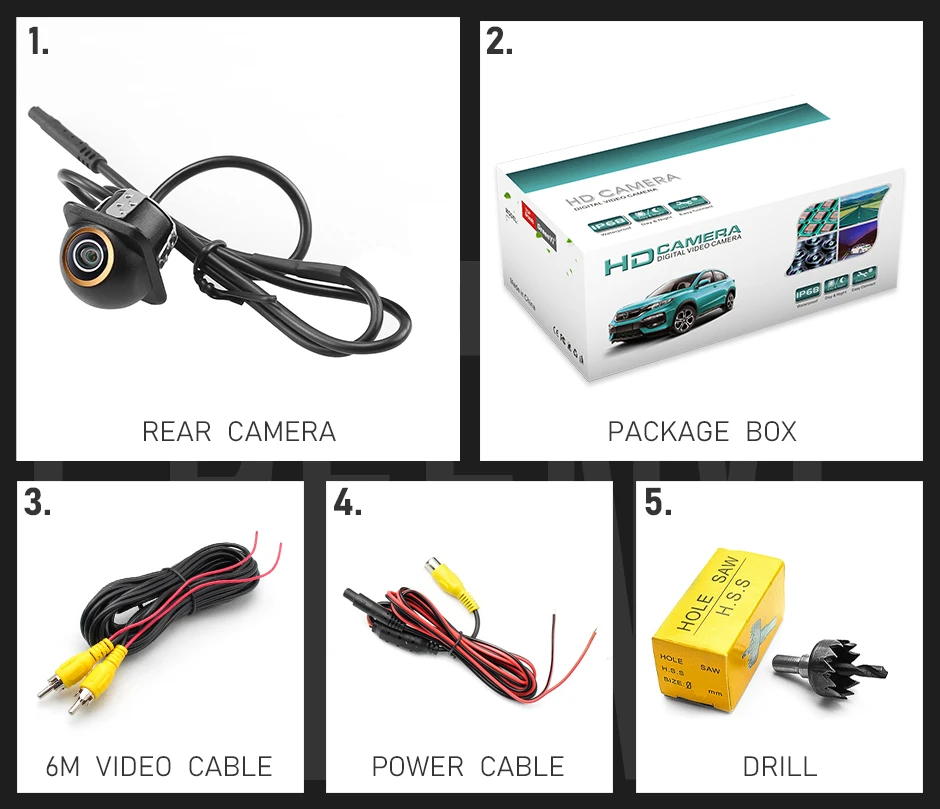 Камера траектории-1 шт.1 х 6 м видео кабель1x1,5 м Мощность кабель1 x Self-винт стук1 x регулировка угла