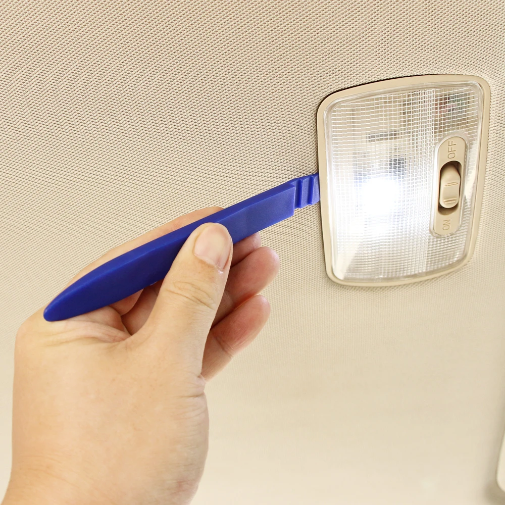 Описание: 100% новый и высокое качество Легко и безопасно для удаления радиопанелей, отделки, литья, дверных панелей и панелей приборов Работа над внутренней и внешней отделкой, удалитель с широкими краями, устройство для удаления рукоятки или обивки зажимов Уменьшите вогнутые и выступающие шрамы, оставленные с помощью винтового ножа или других неэффективных инструментов Прочный и весовой светильник Материал: металл и нейлон Размер: как на картинке Посылка включает: Автомобильные инструменты модификации