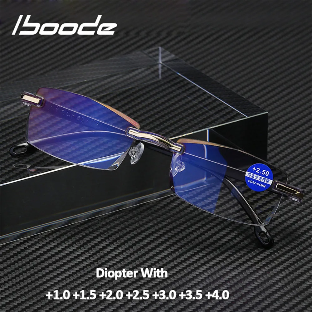 Очки для чтения iboode для мужчин и женщин, без оправы, пресбиопические, с Anti светильник, с диоптриями, в деловом стиле, + 1,0, 1,5, 2,0