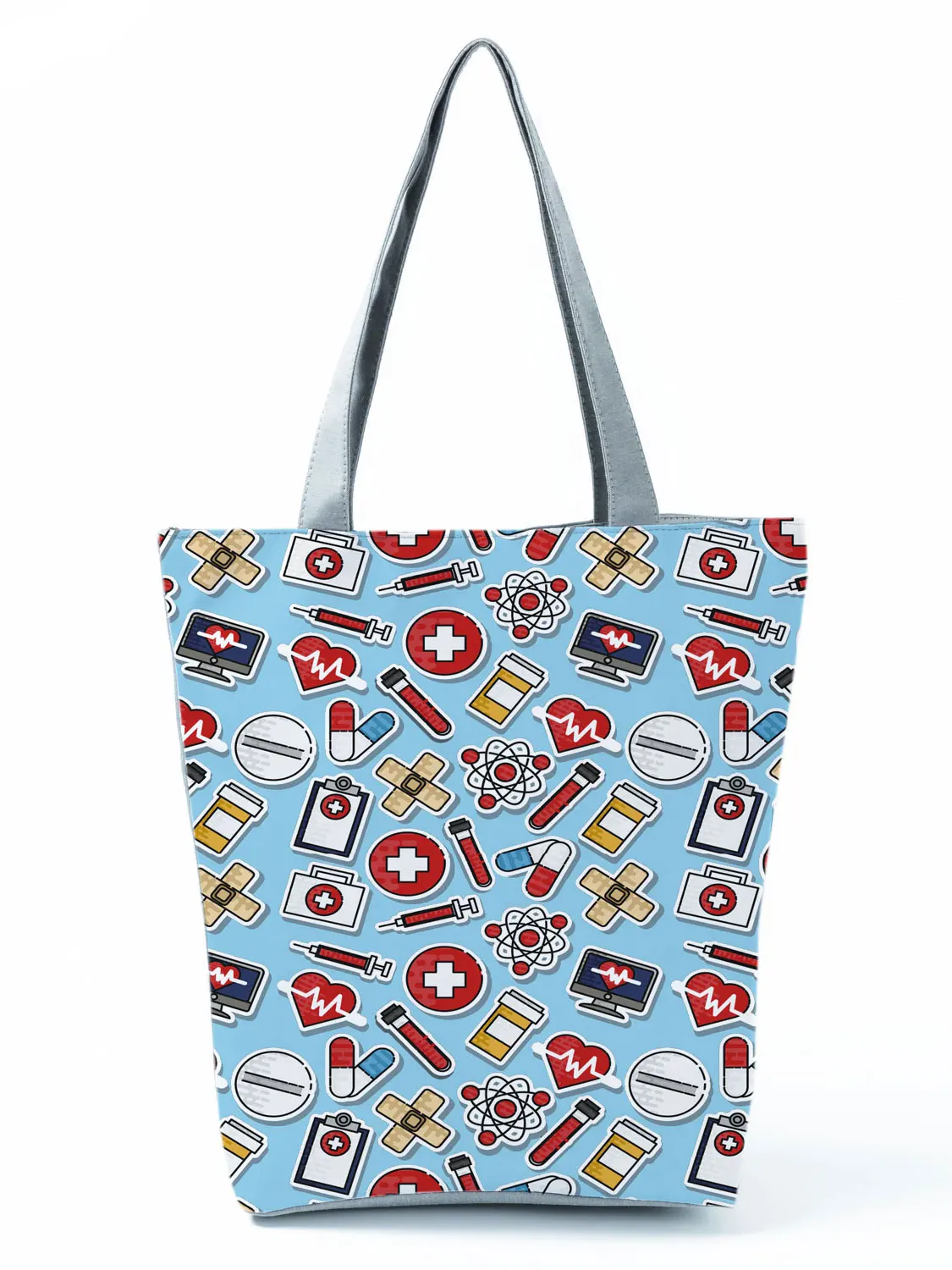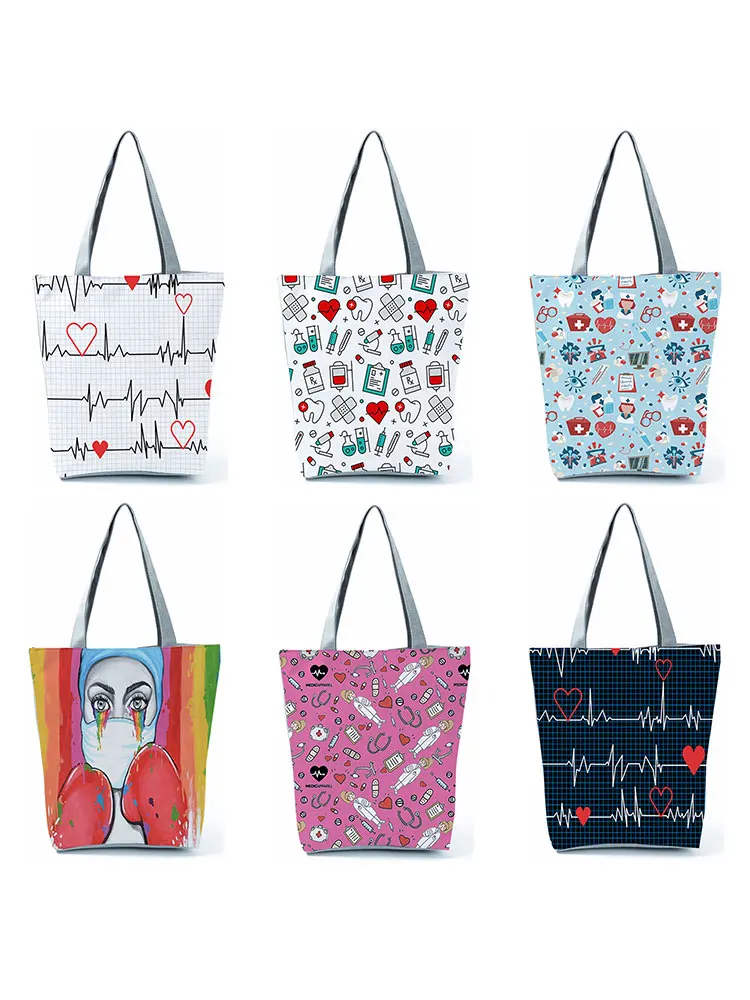 Сумки с принтом ЭКГ, универсальная сумка через плечо для медсестры, модная женская сумка, Экологичная пляжная сумка, вместительная Портативная сумка для покупок