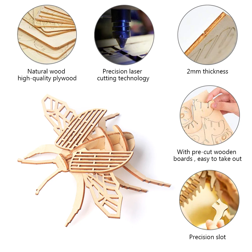 3D деревянная головоломка сделай сам, модель насекомых, игрушки, животные, подарок на день рождения для детей, Детский комплект для сборки, игрушка, интеллектуальная Развивающая игра