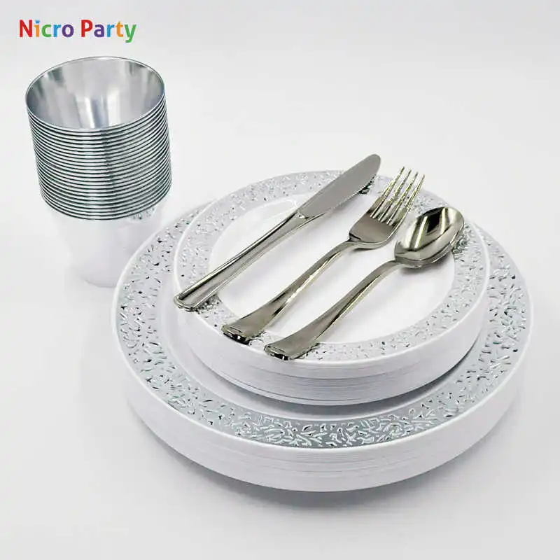 Nicro 25 человек вечерние серебряные пластиковые тарелки Свадьба од...