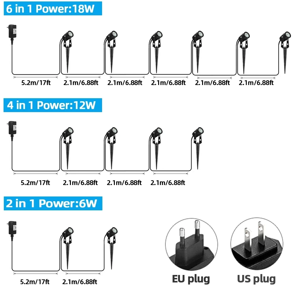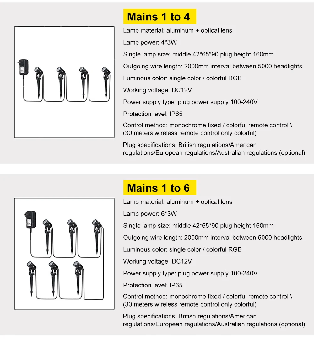 Уличный светодиодный светильник для газона, лампа для украшения сада с радиочастотным беспроводным дистанционным управлением, водонепроницаемый точечный светильник для ландшафта с вилкой Стандарта ЕССША, от 1 до 4 RGB