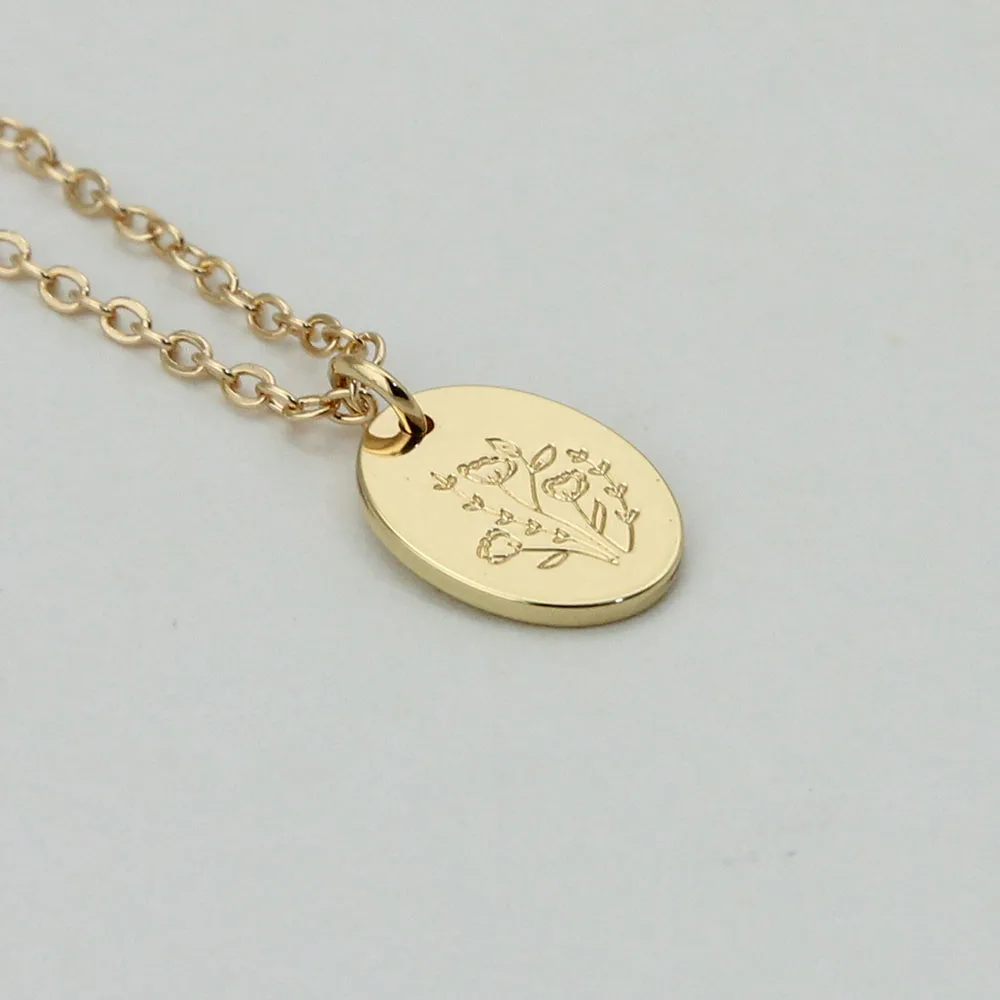 Флора рождения Цветок Овальный Цепочки и ожерелья дисковое ожерелье...