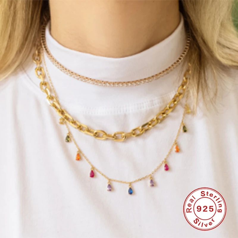 Ожерелье ROXI для женщин, модное ожерелье золотого цвета из серебра 2021 пробы для девушек, ожерелье-цепочка до ключиц, ювелирные изделия, повседневные ожерелья, 925