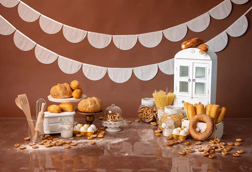 Кухня пончик, хлеб фоны новорожденный ребенок душ удар торт мука шоколад фотография Фон Фотостудия фотозона