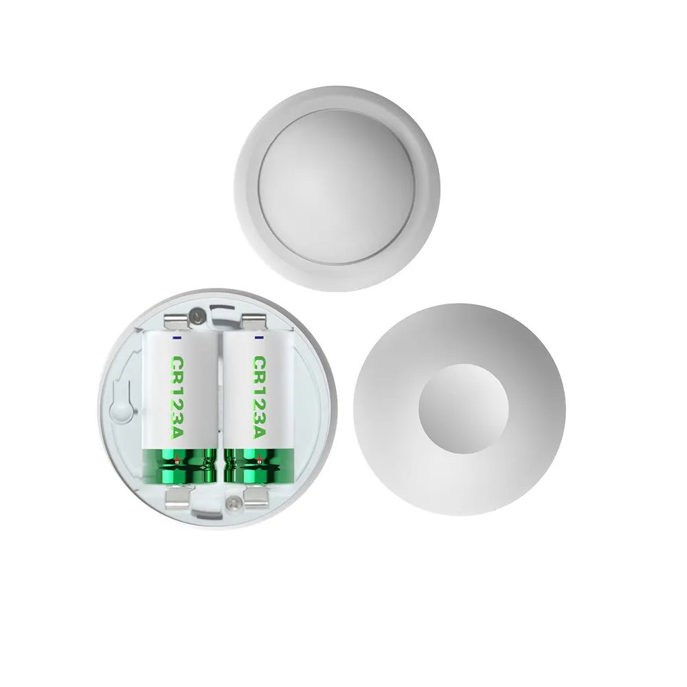 Энергопотребление датчика движения очень низкое, особенно в режиме ожидания при редких срабатываниях. Новых «свежих» батареек хватит от нескольких месяцев до более года, в зависимости от количества срабатываний и активной связи датчика с приложением. Стартовые 2шт батарейки CR123A входят в комплект поставки, не забудьте удалить заглушки с их контактов перед установкой датчика.
