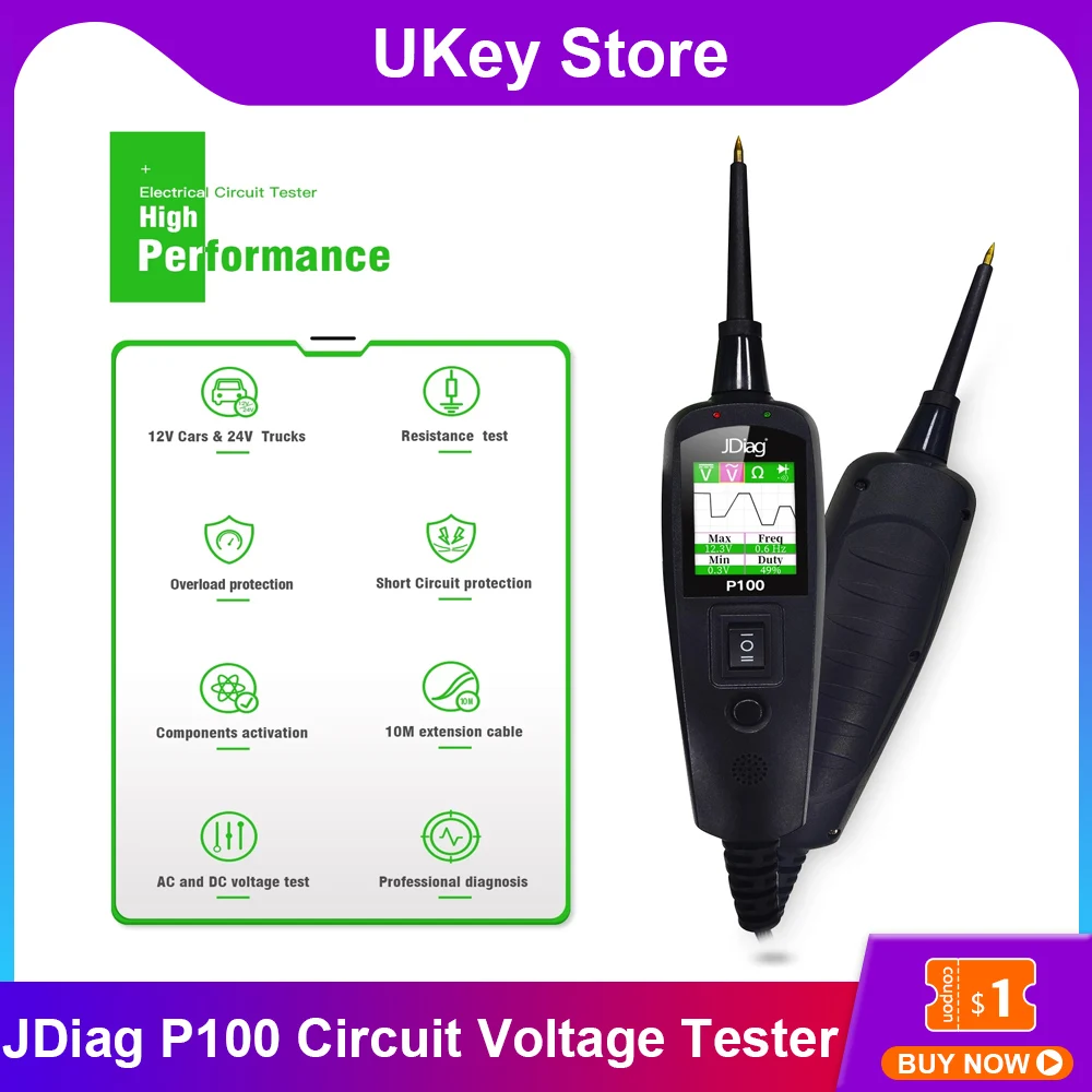 Тестер электрической цепи JDiag P100, 0-70 в, Автомобильные диагностические инструменты Powerscan PT 100 для автомобилей, грузовиков и мотоциклов