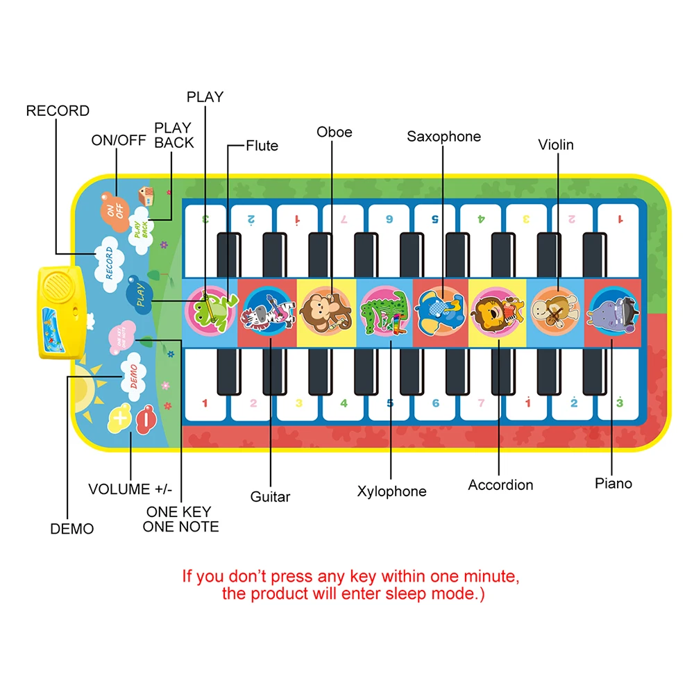 Детский музыкальный коврик для пианино, игровой коврик с клавиатуро...