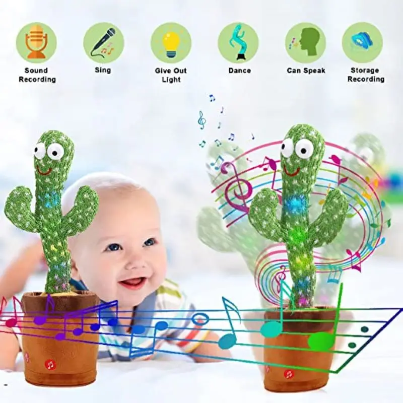 Особенности:1. Материал: игрушка-кактус использует ПП хлопковый наполнитель, который мягкий и удобный, безопасный и здоровый.2. Раннее Образование: хорошее для раннего образования. Игрушки будут прыгать с ритмом, который может привлечь внимание детей.3. Забавные игрушки: игрушки содержат 120 английских песен, вы можете научиться говорить и танцевать в течение нескольких часов, что принесет детям жизнь счастливого времени.4. Лучший подарок: веселая музыка и танцы очень подходят для создания приятной атмосферы и для проведения вечеринок.5. Ежедневное техническое обслуживание: Не мойте в воде, избегайте высокой температуры и Остерегайтесь сильного давления.Описание:Эта игрушка-кактус может сиять, танцевать, записывать и Учиться говорить, что является идеальной и интересной игрушкой.Характеристики:Размер: 32 смМатериал наполнения: полипропиленовый хлопокПесни: 120 английских песенИсточник питания: 3 * батарейки типа АА (не входят в комплект)Посылка включает в себя:1 * игрушка-кактус (без батареи)Примечания:1. Допускается погрешность в 0-1 дюйм из-за ручного измерения. Спасибо за понимание.2. Мониторы не калибруются так же, цвет товара, отображаемый на фотографиях, может немного отличаться от реального объекта.