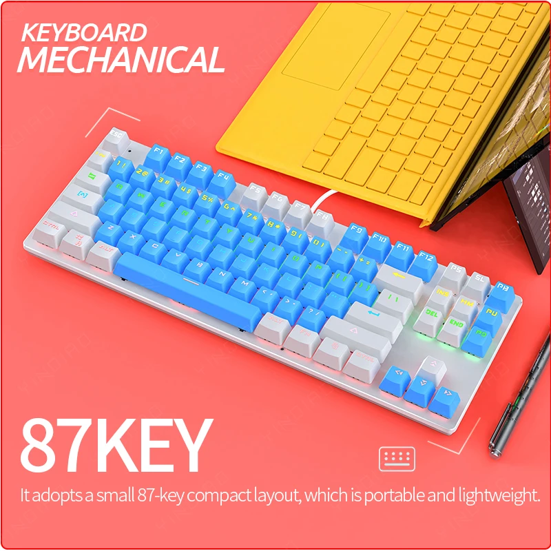 Игровая механическая клавиатура Cyan/черный переключатель Смешанная цветная RGB игровая клавиатура с подсветкой 87key teclado mecanico для портативных ПК