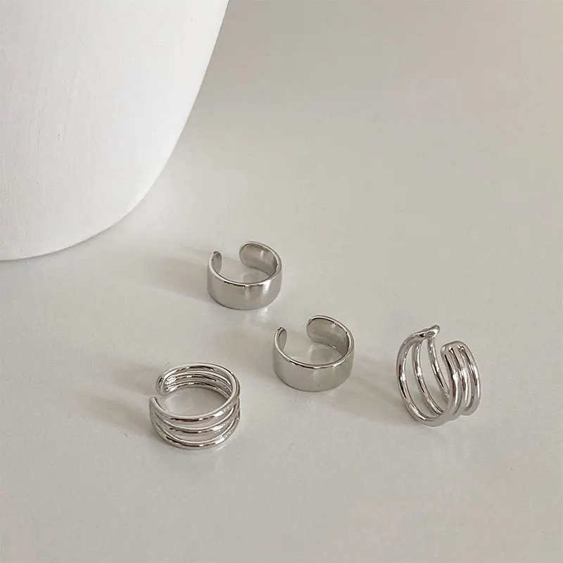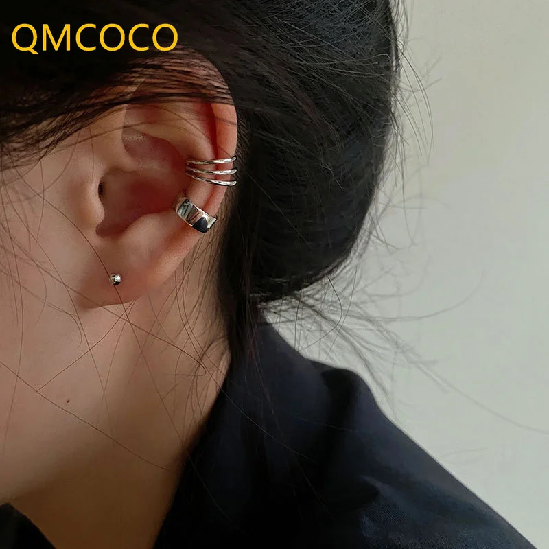 QMCOCO 925 Серебряный темпераментный модный контрастный многокруговой зажим для ушей винтажный дизайн INS женский зажим для ушей для вечеринки аксессуары