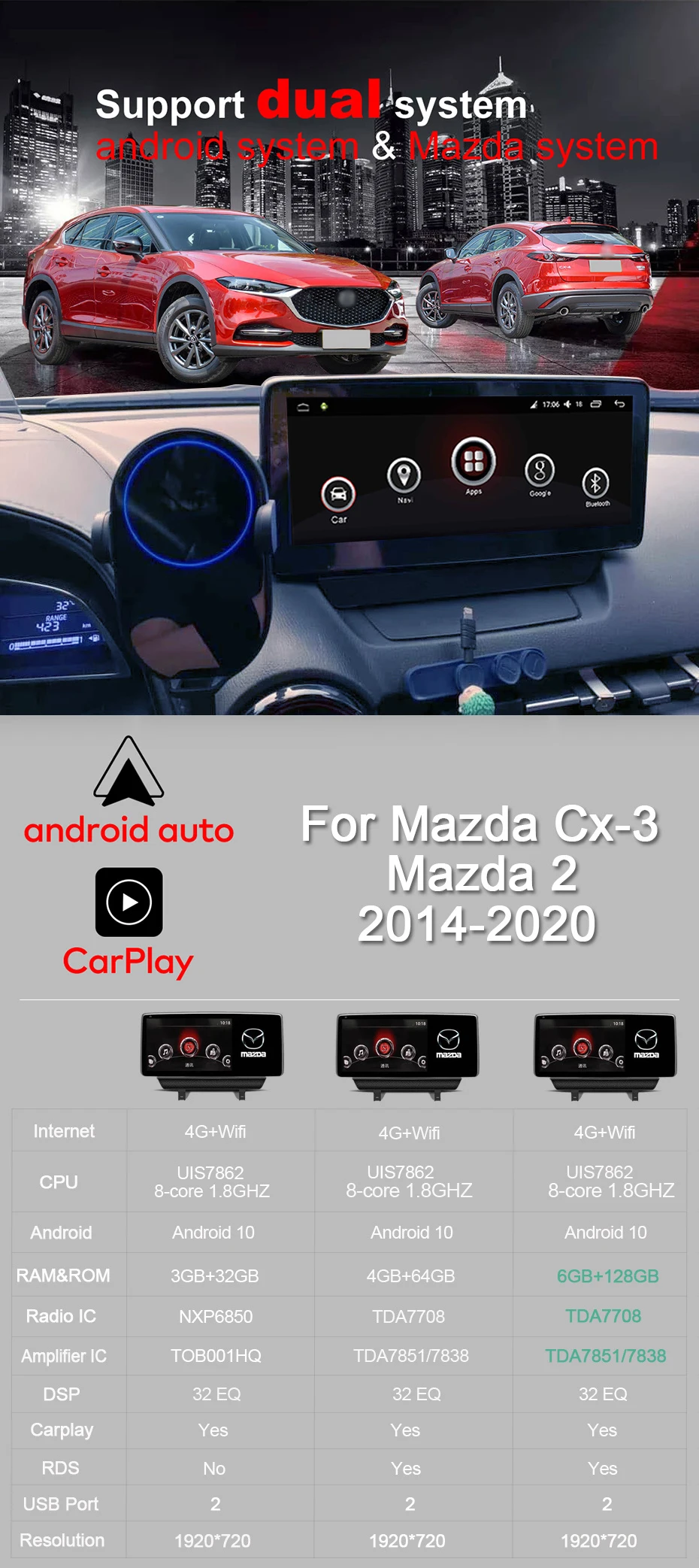 COHO для Mazda CX-3 Mazda 2 2014-2020 Android 10 4G Автомобильный радиоплеер навигация GPS Octa Core 6 + 128 радио мультимедиа