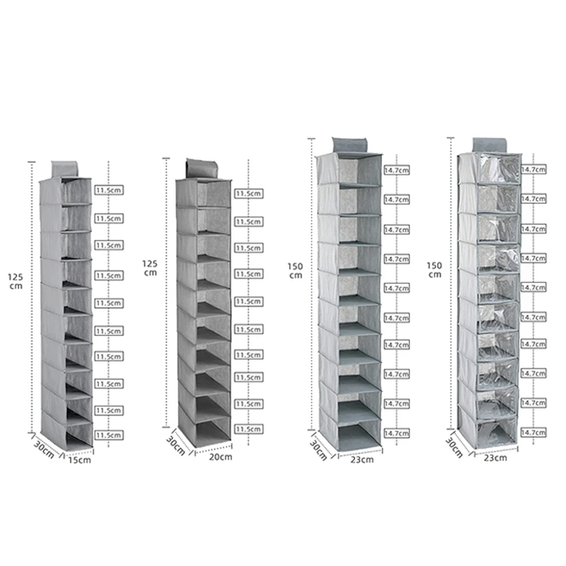 1,10 слоев большой емкости хранения висит мешок 2. Классический серый прочный и простой в использовании, модель без чехла удобнее брать, а модель с чехлом модернизирована, которая является пыленепроницаемой и чистой. 3. Независимые отсеки, упорядоченное хранение