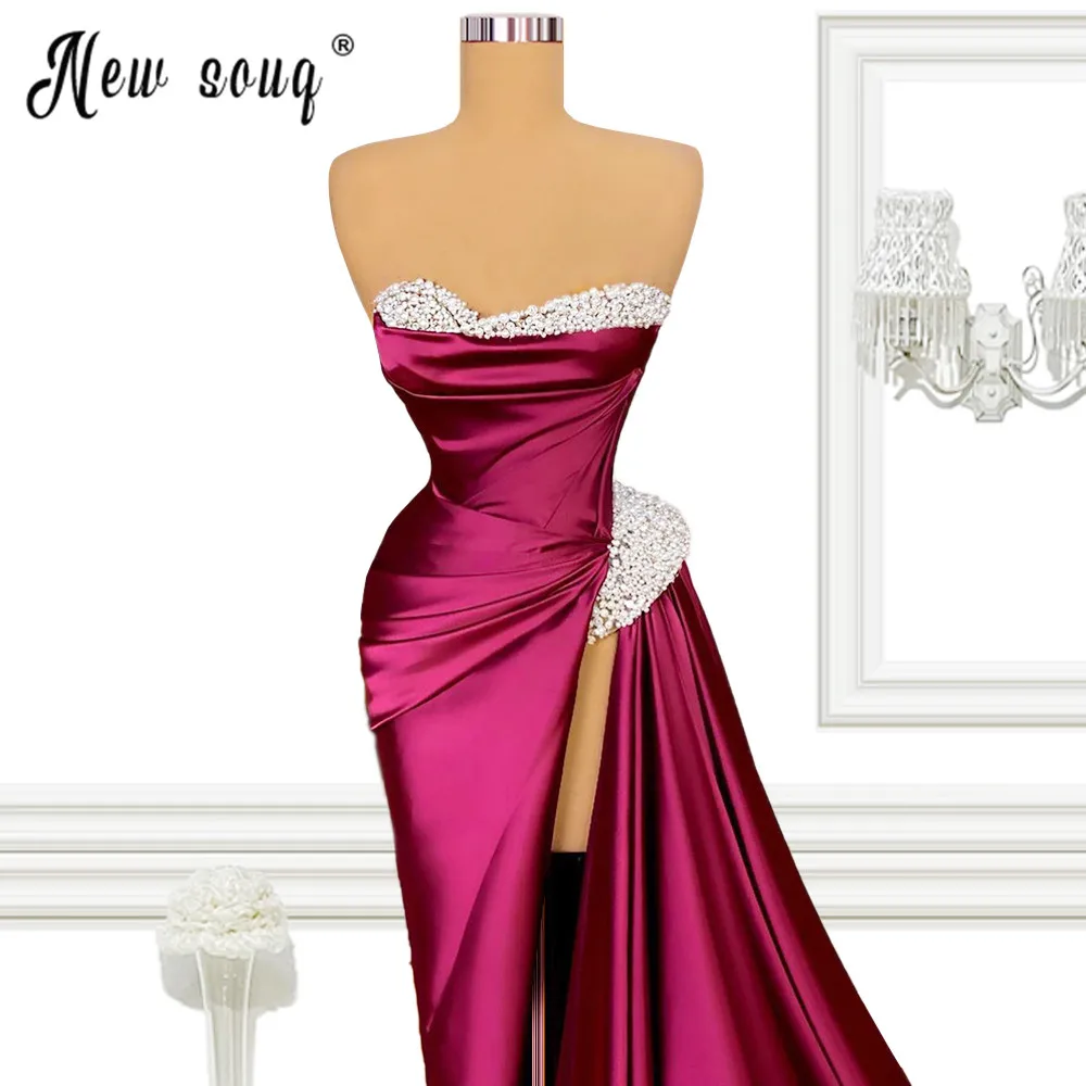 Вечерние платья с красными бусинами, Длинные арабские платья для вы...