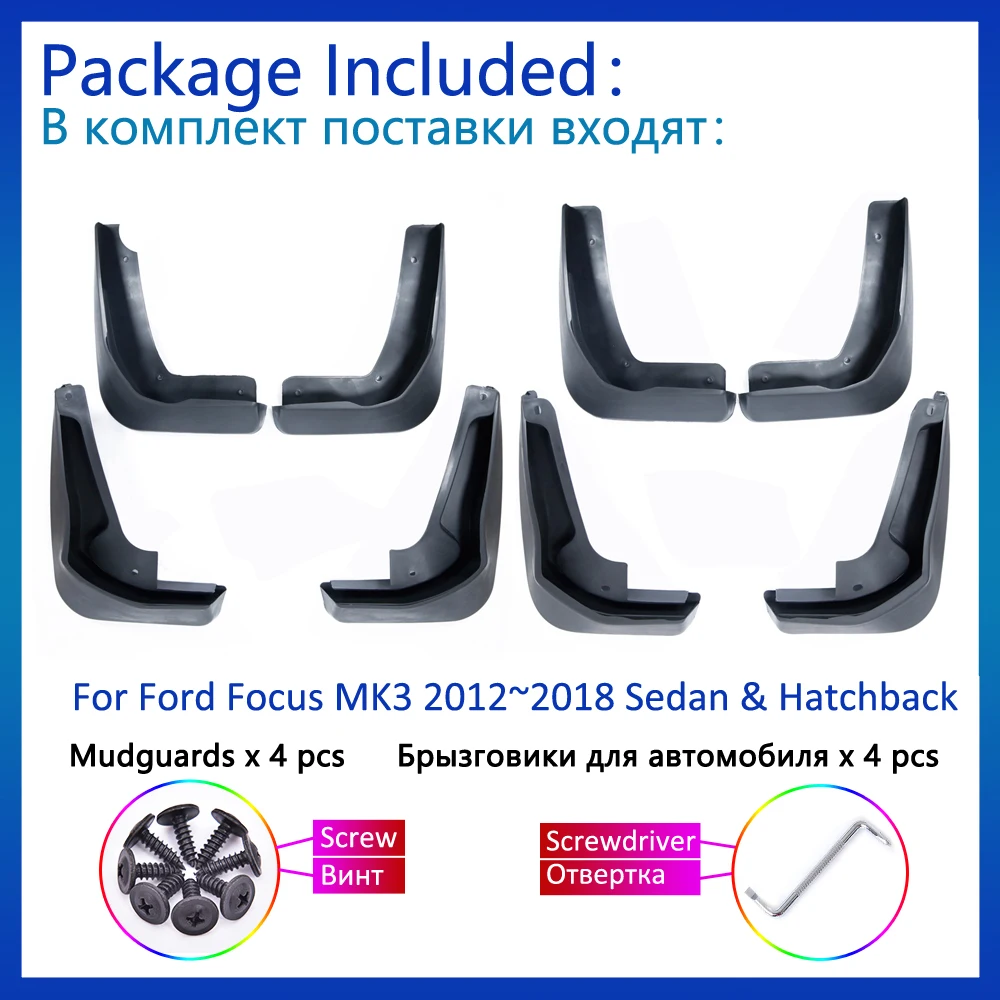 Для Ford Focus MK3 2012 ~ 2018 Седан и хэтчбек, автомобильный брызговик 4x крыло брызговиков, аксессуары для стайлинга, новое обновление, брызговик, защита от брызг 2012 2013 2014 2015 2016 2017 2018