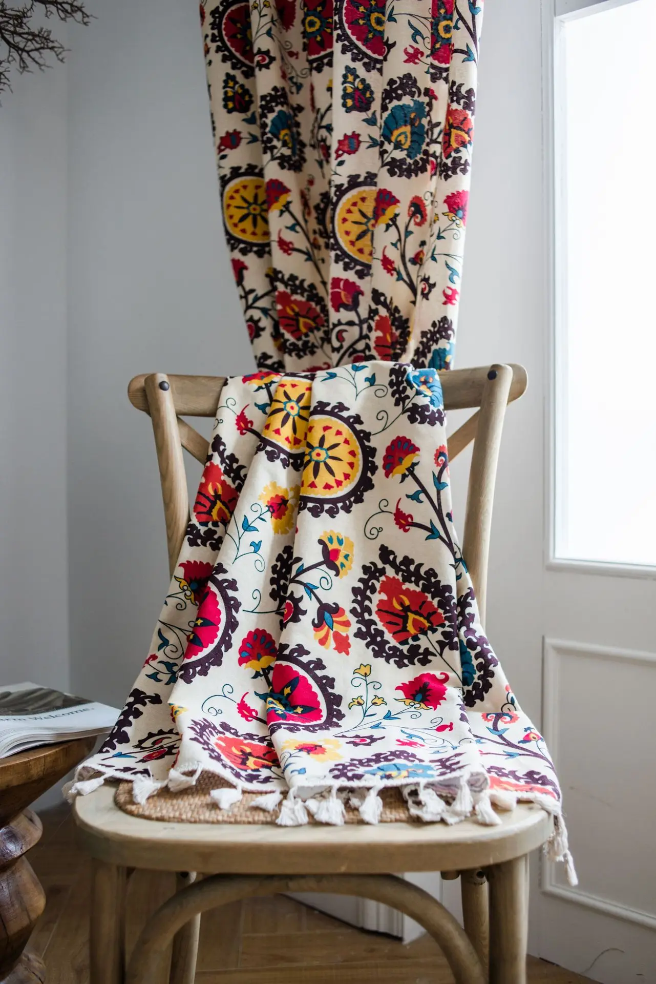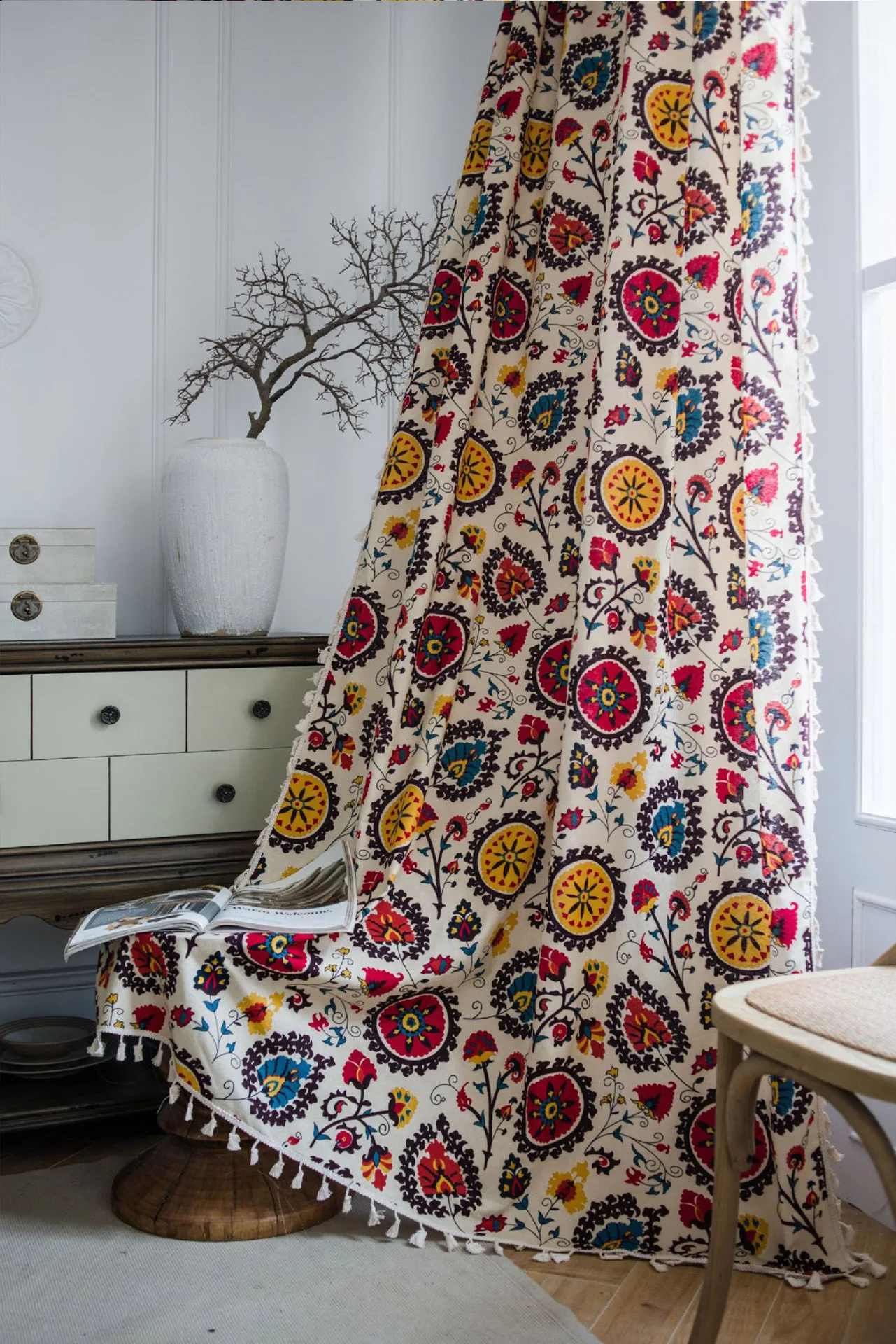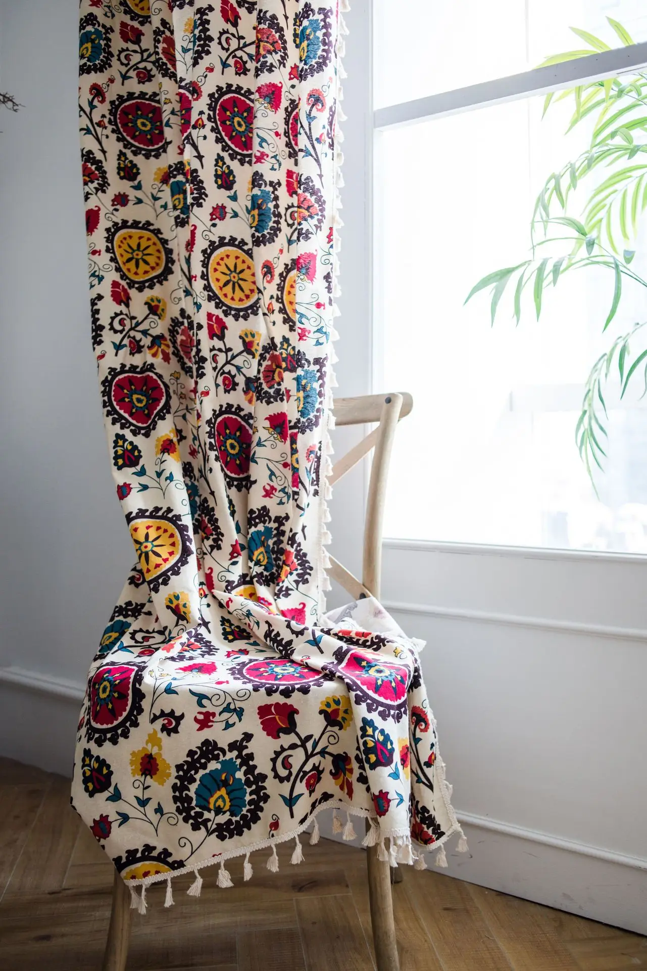 Шторы с цветочным узором в стиле бохо для спальни, гостиной, хлопчатобумажные, Льняные декоративные шторы с кисточками, украшение для дома