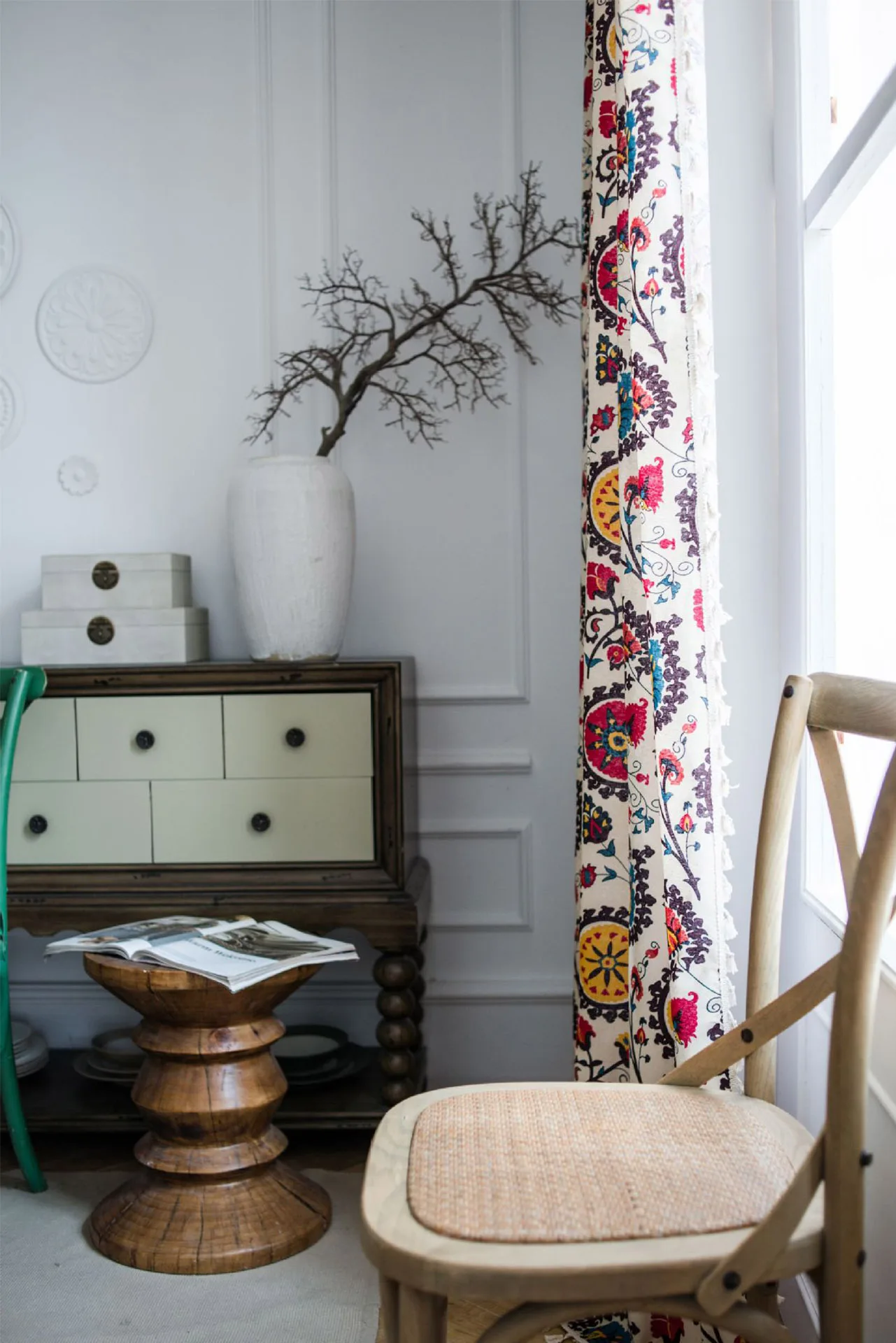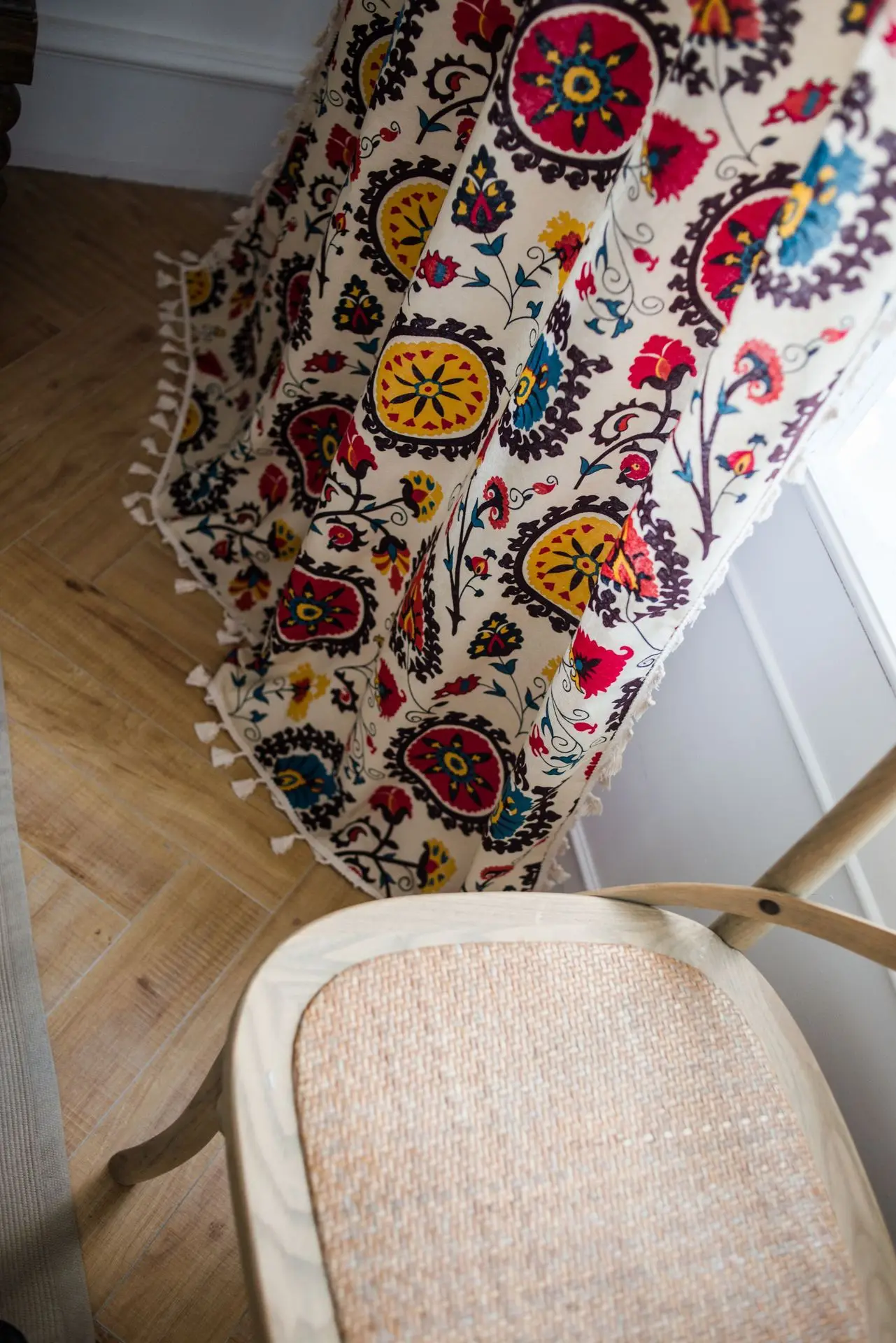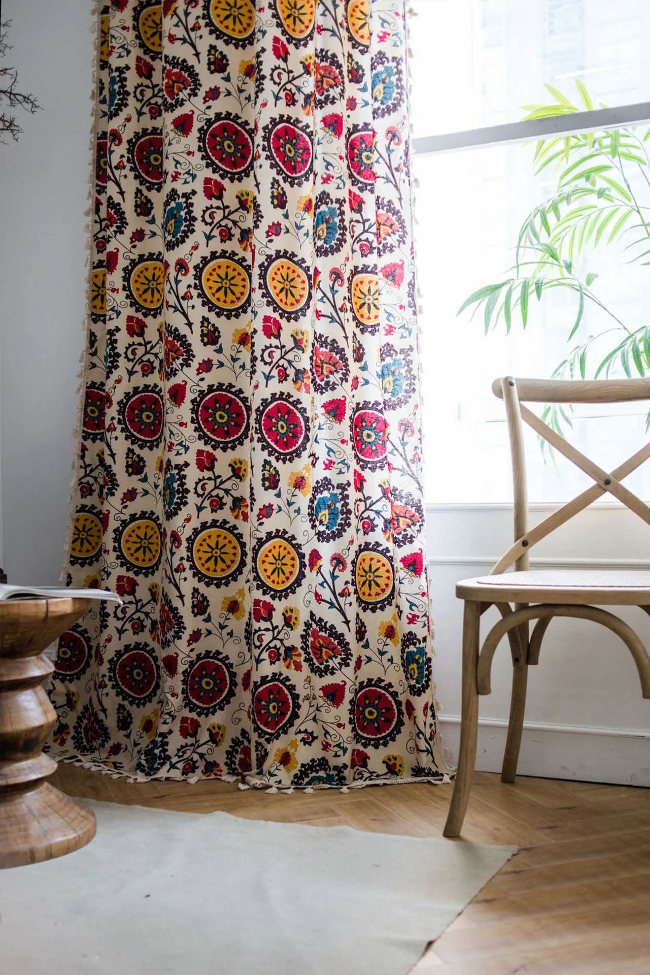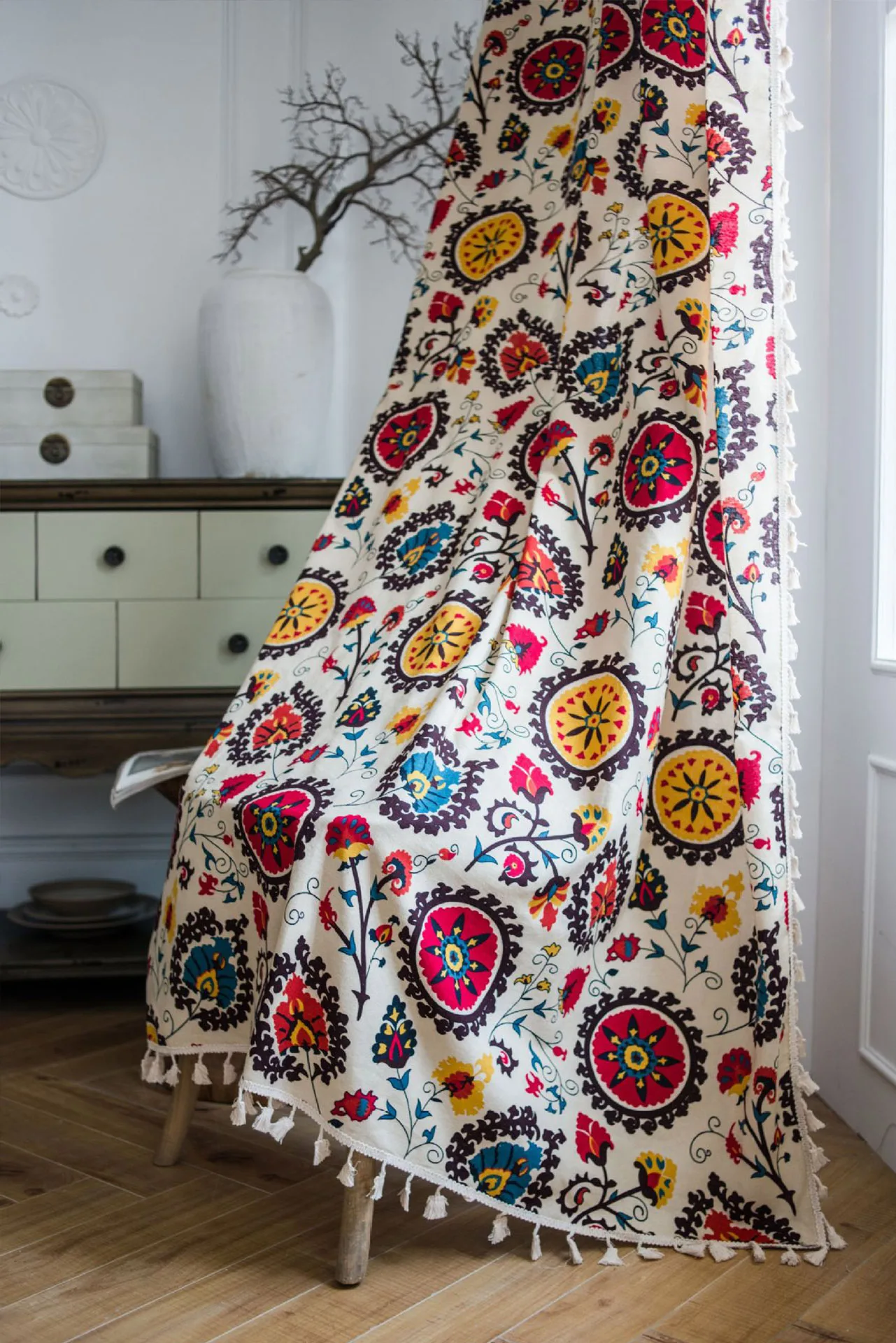 Шторы с цветочным узором в стиле бохо для спальни, гостиной, хлопчатобумажные, Льняные декоративные шторы с кисточками, украшение для дома