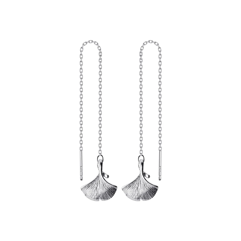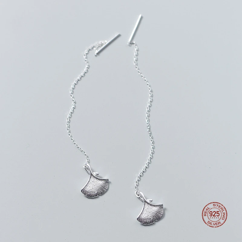 LKO настоящее серебро 925 пробы 100% лист гинкго кисточки висячие серьги для женщин милые серьги-гвоздики девушки ювелирные изделия в подарок украшения