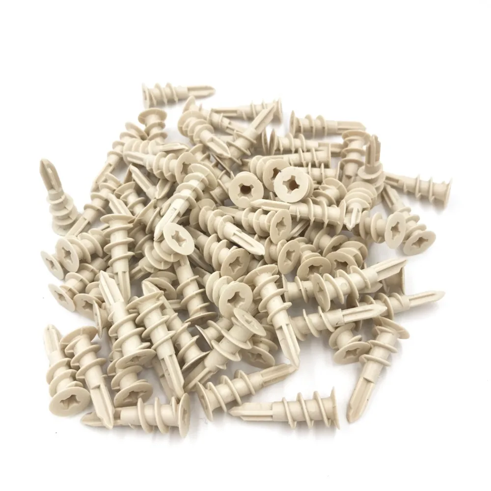 Гипсокартонный якорь 100 шт. 8x40 мм, гипсокартонный нейлоновый ребристый якорь, самосверливающийся настенный гипсокартонный пластиковый нейлоновый якорь