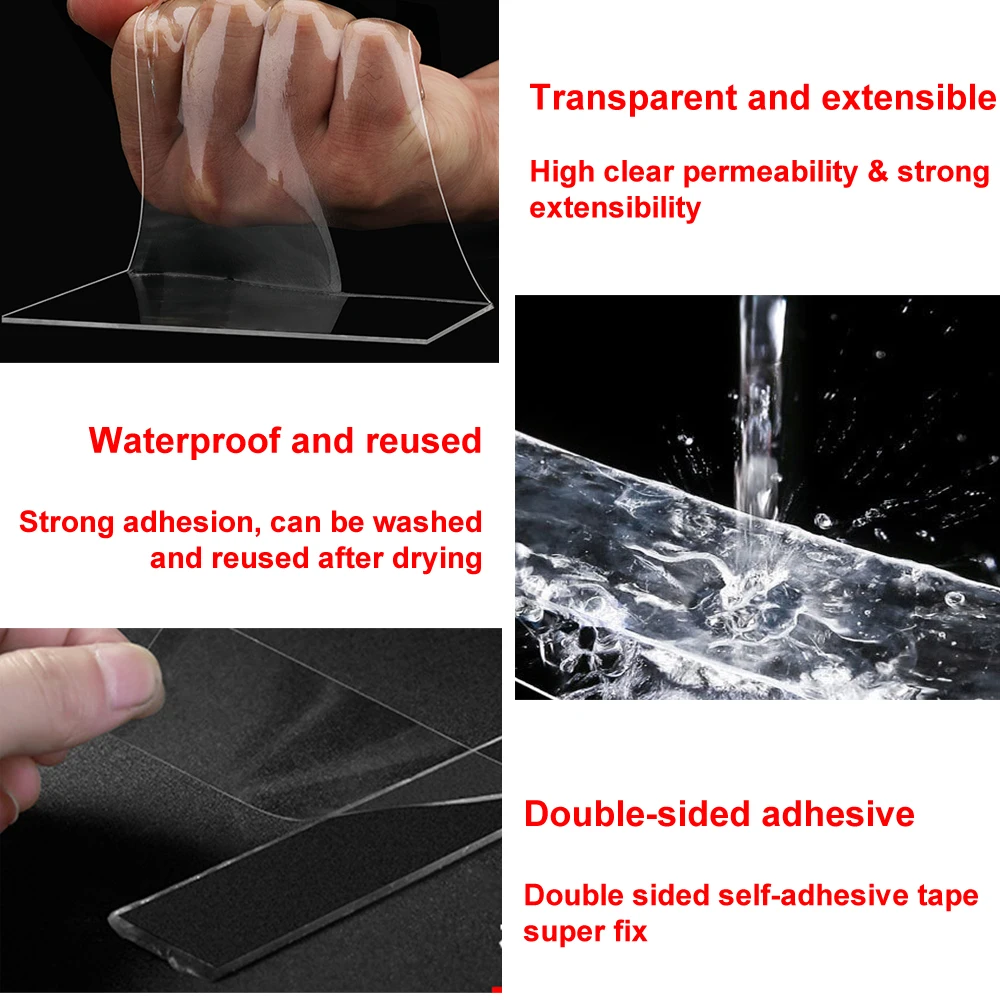 Двухсторонняя прозрачная моющаяся многоразовая водостойкая лента, 5 м, 3 м