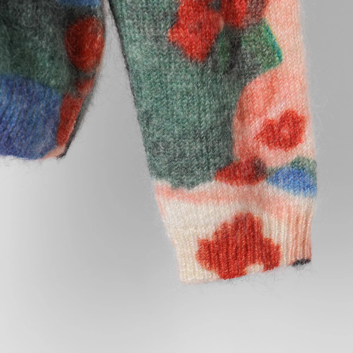 Женский вязаный свитер с цветочным принтом, мохеровый пуловер с кру...