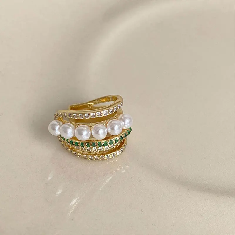 QMCOCO корейские модные жемчужные клипсы для ушей для женщин серебряного цвета нежные C-образные Многослойные циркониевые индивидуальные серьги