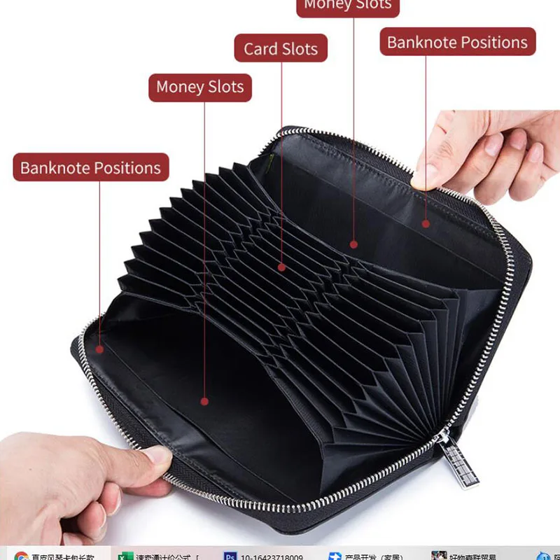 Кожа карточка с визитной карточкой с застежкой сумка Длинный кошеле...