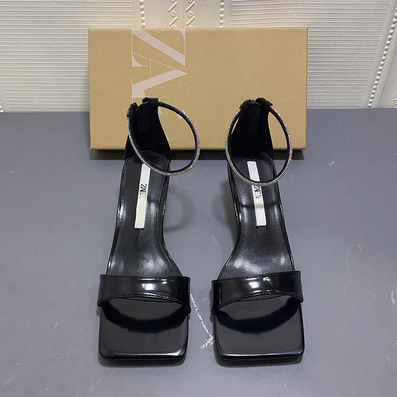 Новинка, летние женские сандалии 2021, черные туфли на высоком каблуке, стразы, квадратные шпильки, женские Вечерние Сандалии 42