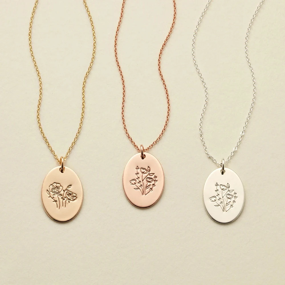 Флора рождения Цветок Овальный Цепочки и ожерелья дисковое ожерелье...