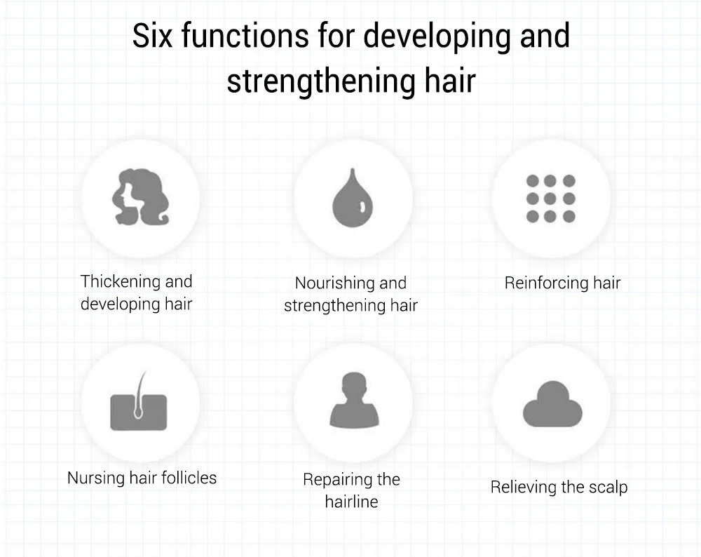 Эффект: ухаживайте за волосами богатым существительным, укрепляйте питание корней волос, ускоряйте рост волос, эффективно предотвращайте облысение, лечите кожу головы и Обеспечивайте защиту