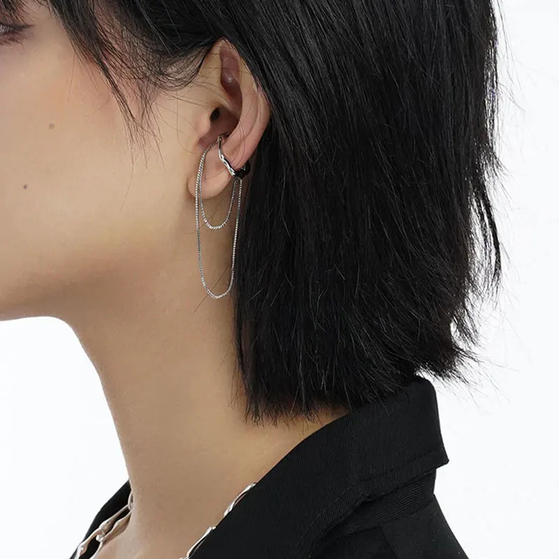 QMCOCO корейские нестандартные серьги цепи INS простой трендовый дизайн кисточка Двойная Цепочка для ушей серебряного цвета клипса для ушей для девочек