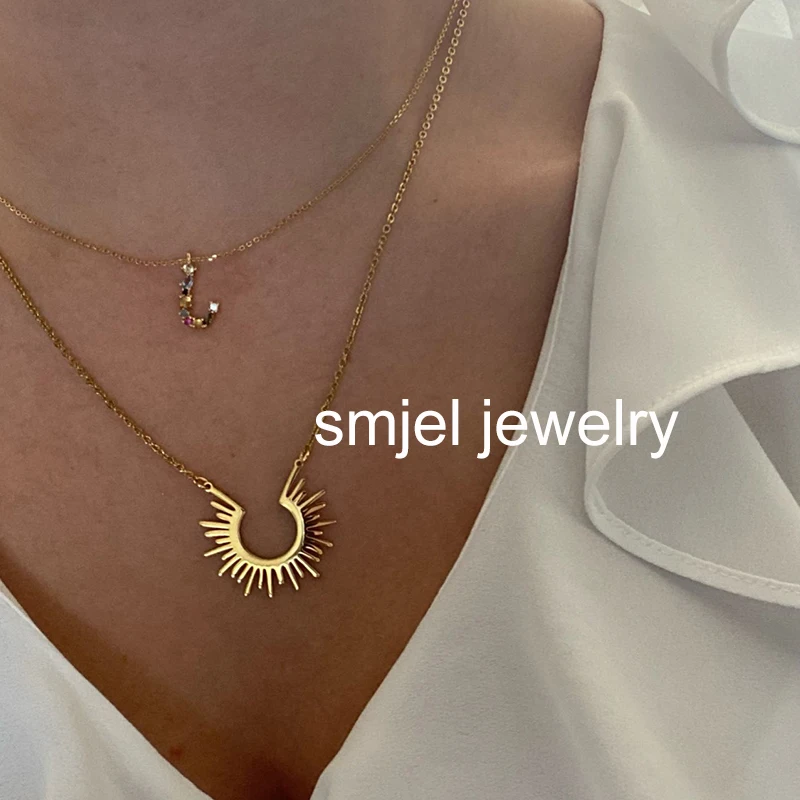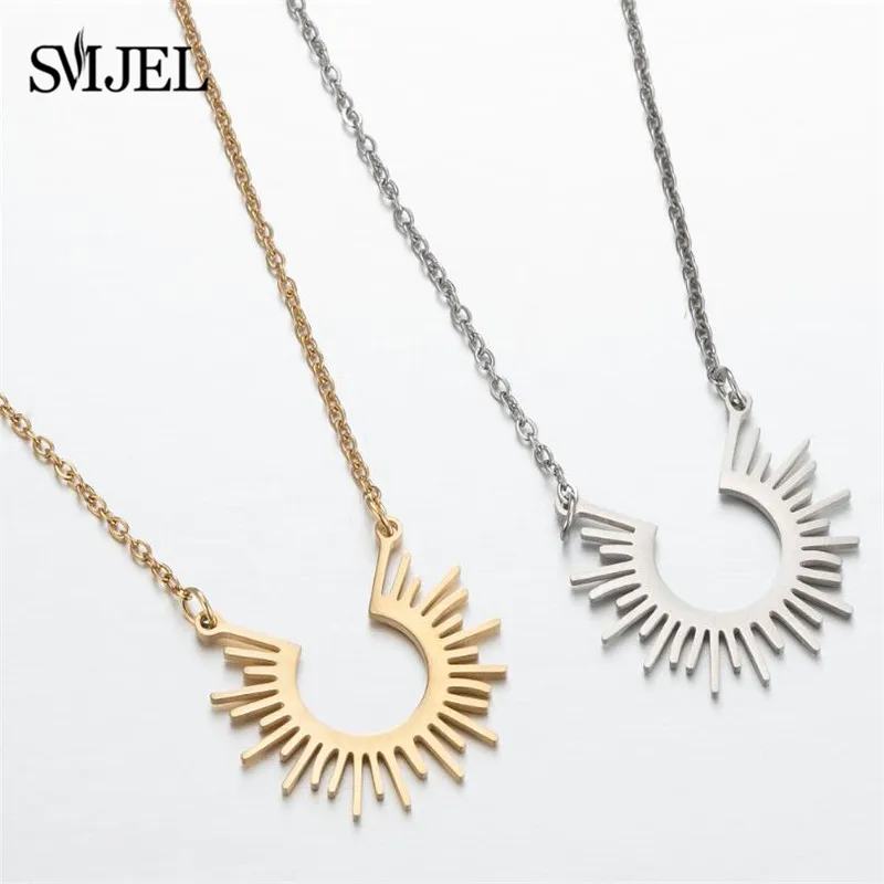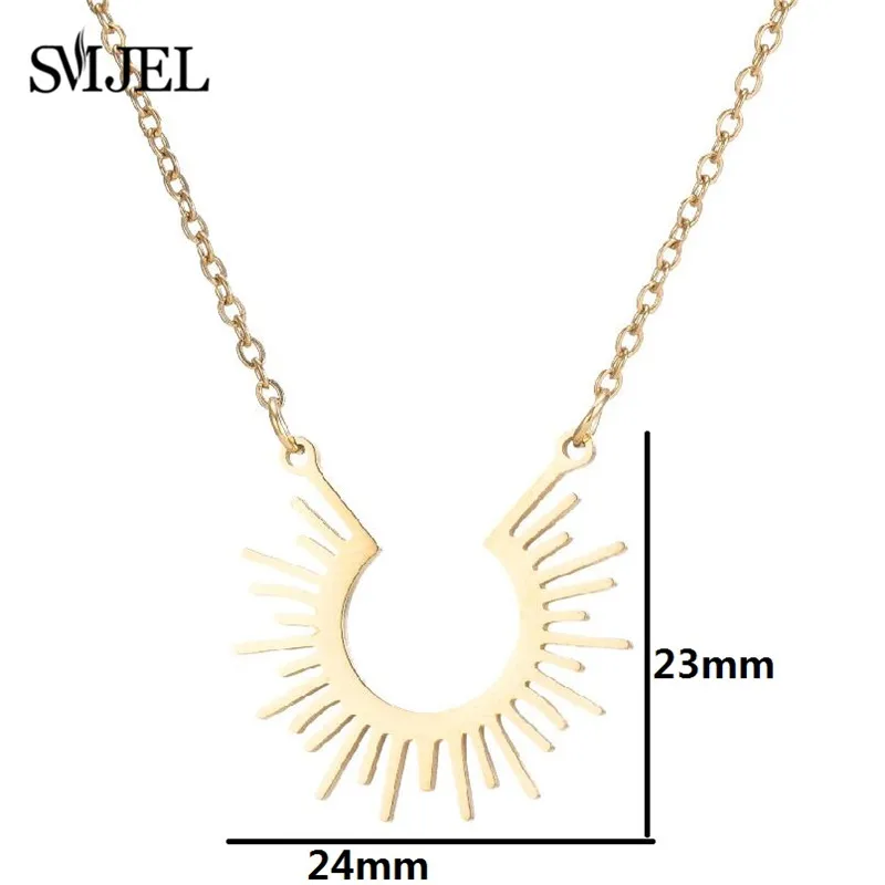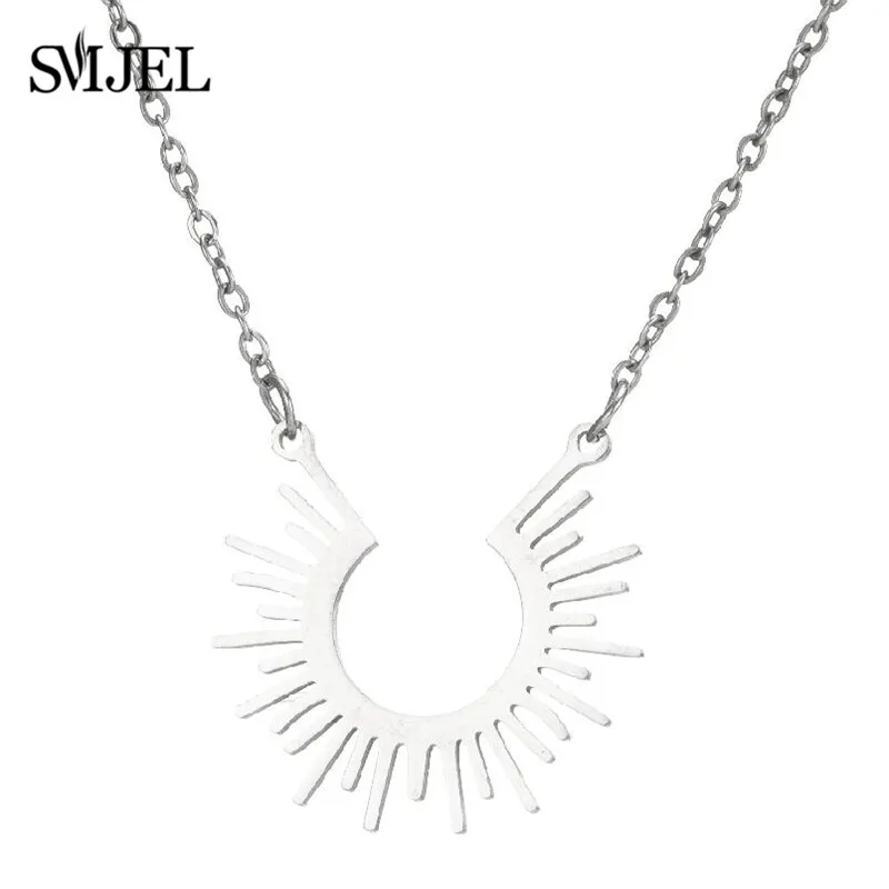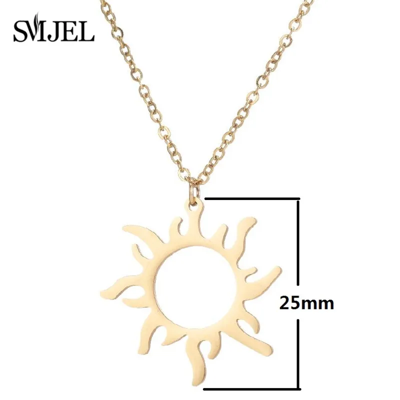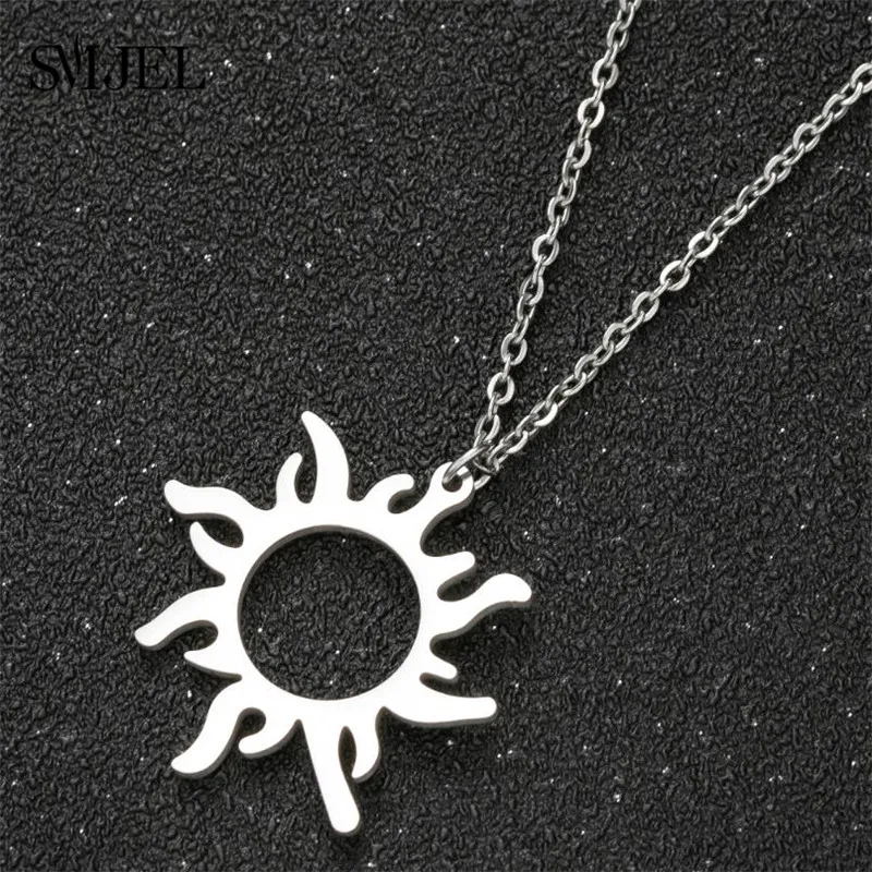 Ожерелье из нержавеющей стали с подвеской в виде сверкающего солнца...