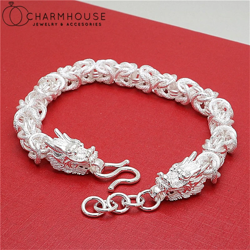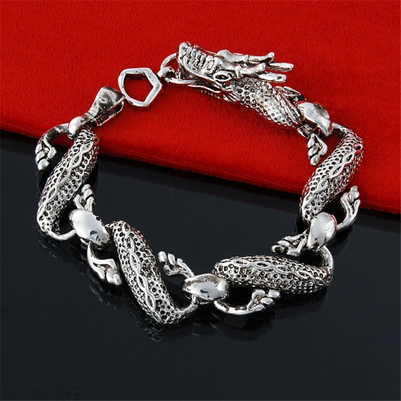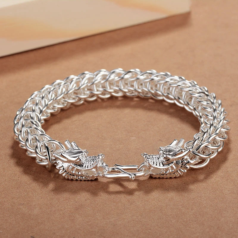 Браслет-цепочка мужской из чистого серебра 925 пробы с драконом