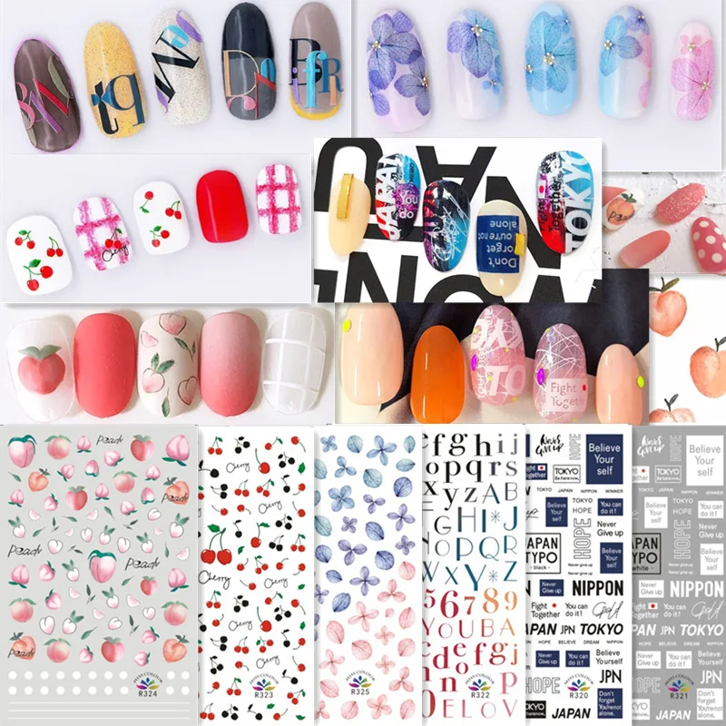 2021 новые летние граффити наклейки для ногтей цветные наклейки для ногтей фрукты английский ультра-тонкие наклейки для дизайна ногтей украшения для ногтей