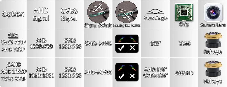 * Компоненты чипов: AHD Sony/OV2053HD* Угол обзора: реальный 165 градусов видимый диапазон.* Эффективные пиксели: AHD 1920*1080P , CVBS 1280*720P.* Формат сигнала: NTSC* Разрешение изображения: 200 Вт пикселей* Видео выход: AHD видео сигнал или CVBS сигнал.* Ночное видение: звездный свет ночного видения. Видимое расстояние больше 10 метров.* Изображение ночного видения: автоматическое управление коэффициентом усиления, автоматический баланс белого, компенсация автоматической подсветки• Объектив: 14/16 мм объектив рыбий глаз 6 стеклянных линз.* Низкое освещение: 0.01Lux* Отношение сигнал-шум: ≥ 69 дБ* Рабочий Источник питания: DC12V/2A* Рабочая температура: -45 °C ~ + 70 °C* Максимальная мощность: 3 Вт