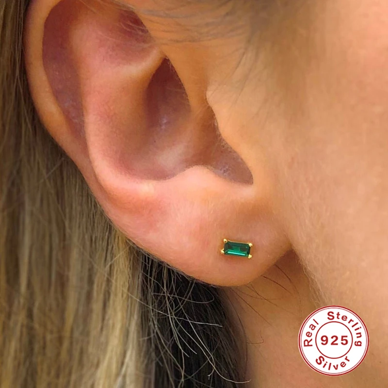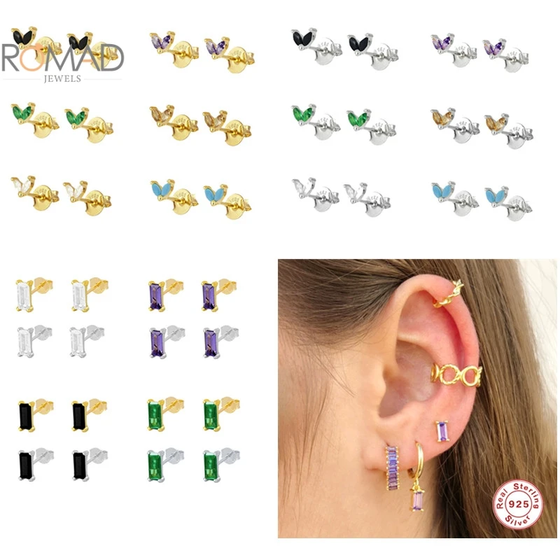 Женские серьги-гвоздики ROMAD, серьги из стерлингового серебра 925 пробы с фианитами зеленого, черного и фиолетового цветов