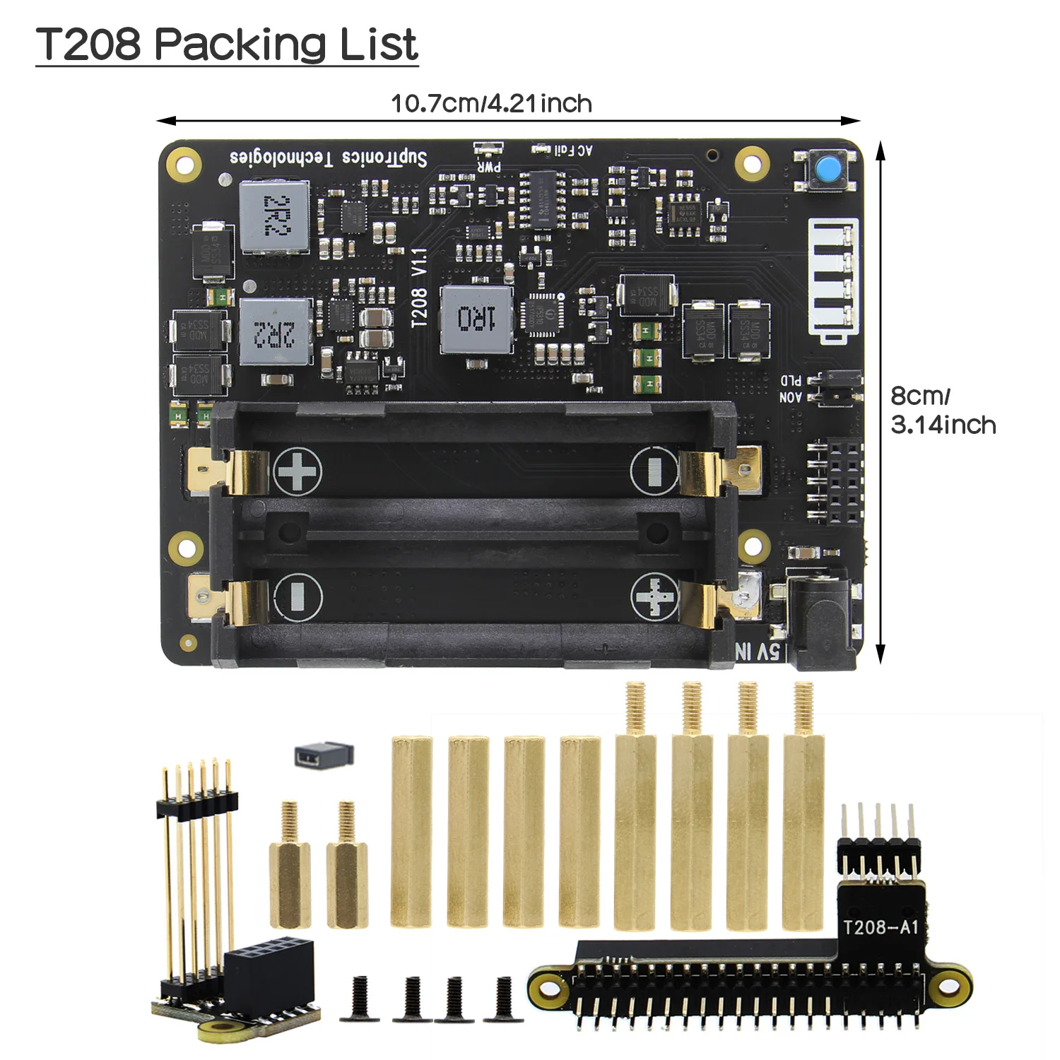 T208-это обновленная версия T200, поддерживающая до 6 аккумуляторов 18650, которые могут обеспечить достаточную мощность для ваших научных исследований на открытом воздухе. Мы больше не используем кабельные соединения и используем новые и более надежные соединения GPIO.T208-это расширенная плата источника бесперебойного питания (UPS). Разработано специально для NVIDIA Jetson Nano development board, оно обеспечивает максимальный резервный источник питания 5,1v8000 мА, умное и безопасное управление питанием, обнаружение сбоя питания, автоматический запуск, Полное завершение работы через программное обеспечение, усовершенствованная система управления питанием, I2C и светодиодный датчик топлива оснащен 6 аккумуляторами 18650.【Характеристики мощности 】
