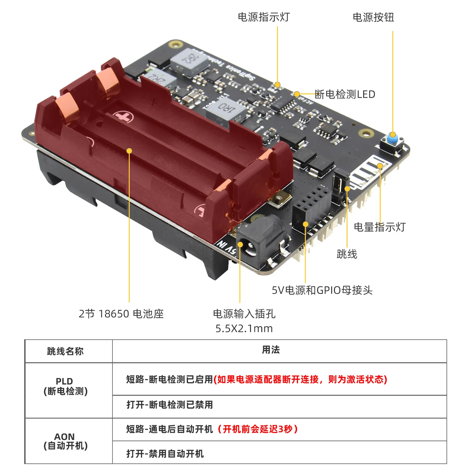 Кнопка на плате может управлять включением/выключением питания-нажмите-удерживайте кнопку не менее 3 секунд)