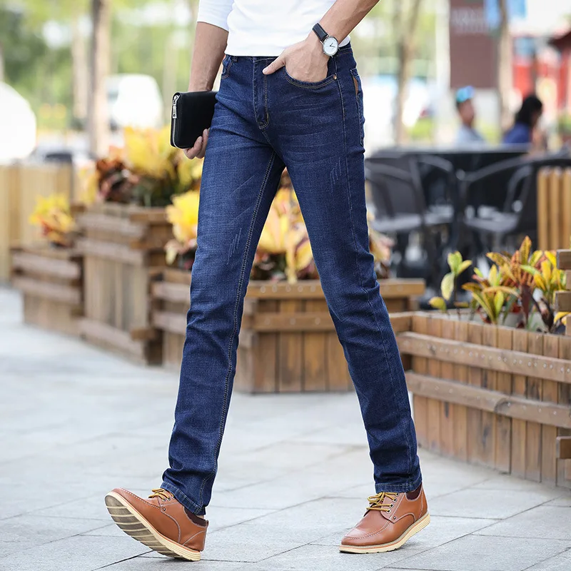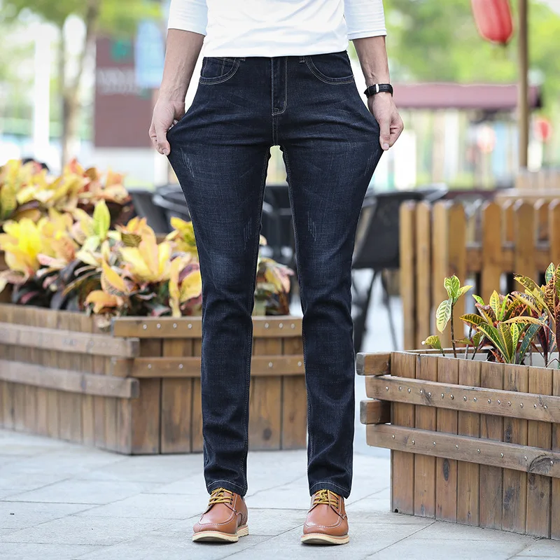 Джинсы мужские стрейчевые, классические Брендовые брюки из денима, брюки Слим в повседневном и деловом стиле, светло-голубые Черные