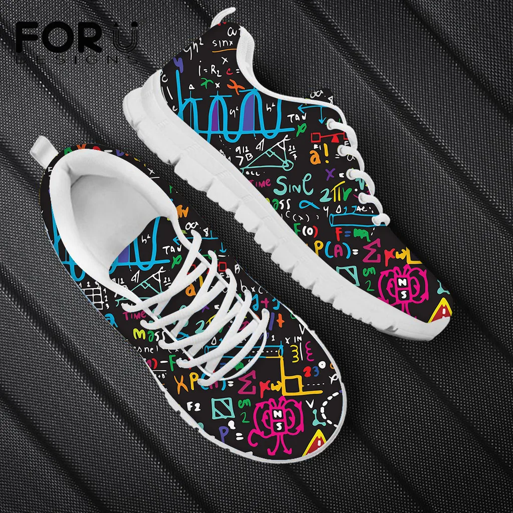 Кроссовки для девочек-подростков FORUDESIGNS, удобная обувь на платформе, с математическим рисунком, мягкие, для студентов