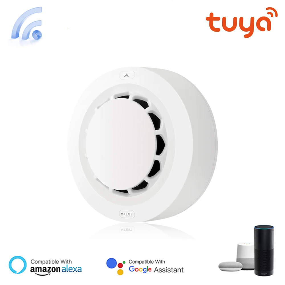 Датчик дыма Tuya с Wi-Fi, система безопасности для умного дома, детектор огня, дыма, звука и светильник, дистанционное управление