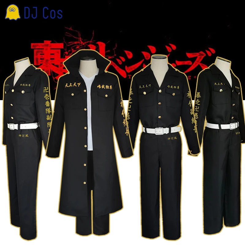 Черный костюм для косплея аниме Мстители Токио, Тренч, штаны, пояс ...