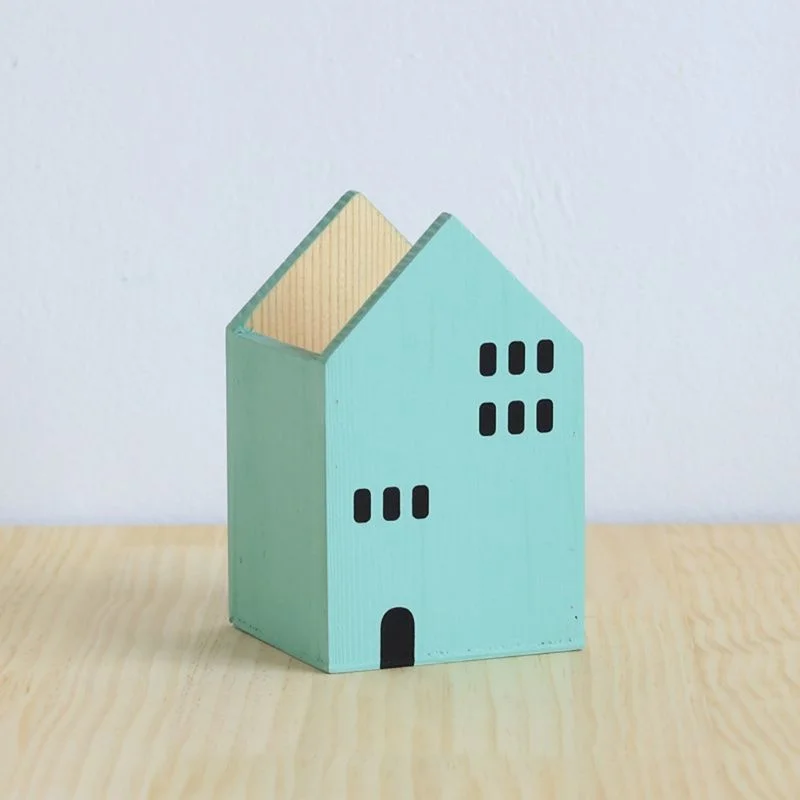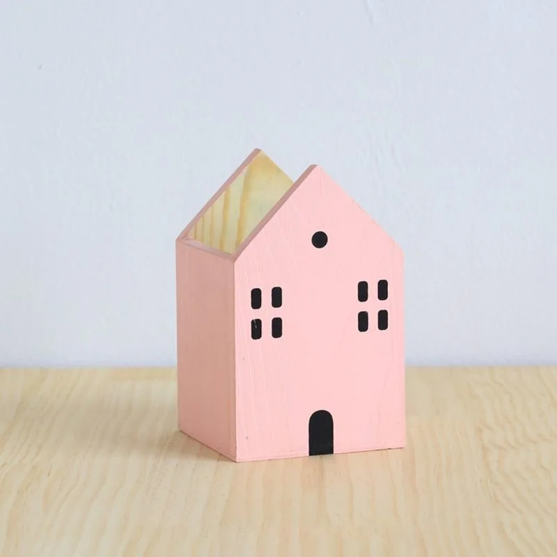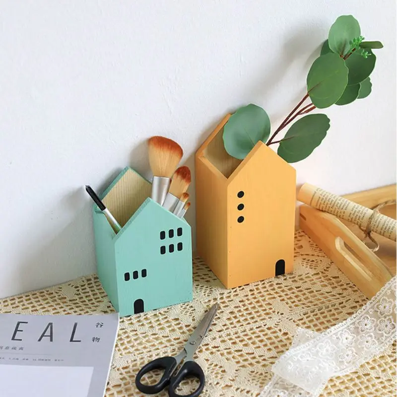 Деревянный Настольный Органайзер в форме дома, контейнер для канцелярских принадлежностей