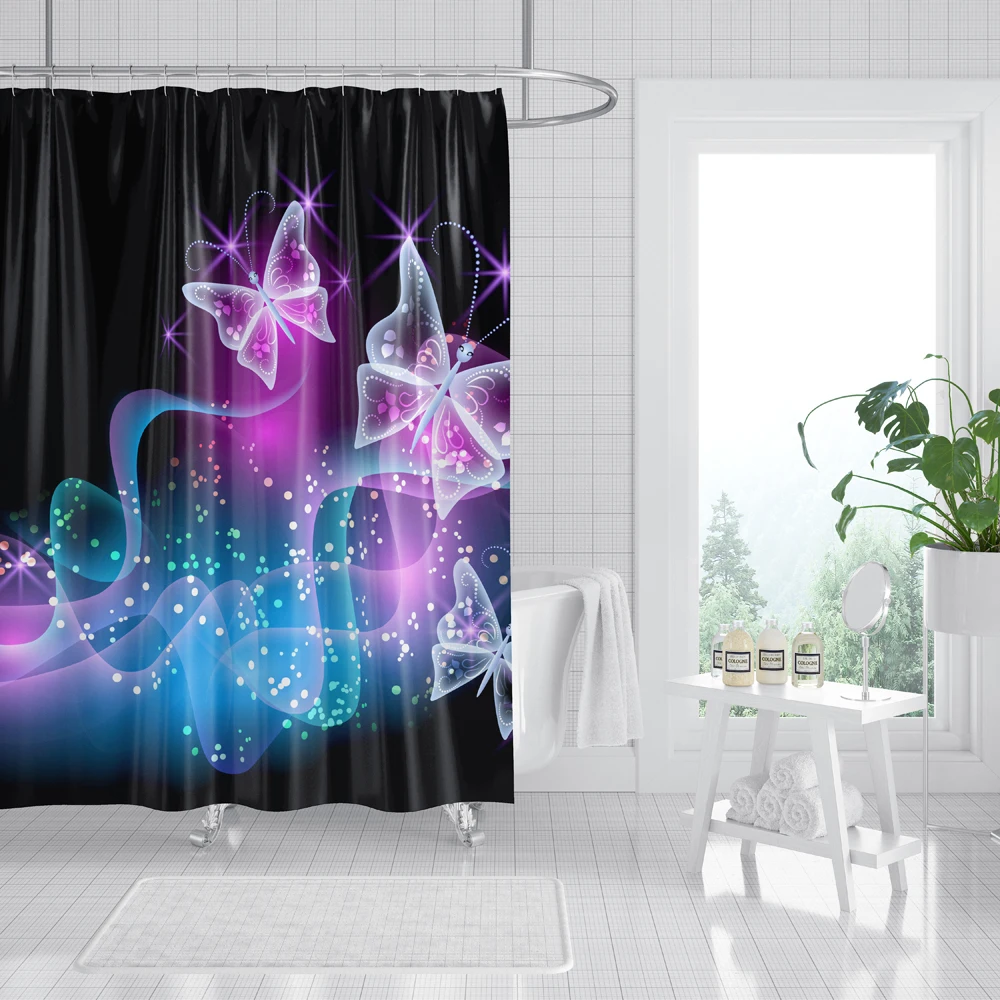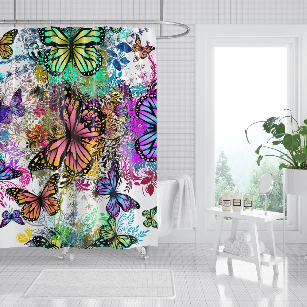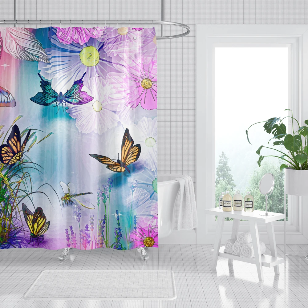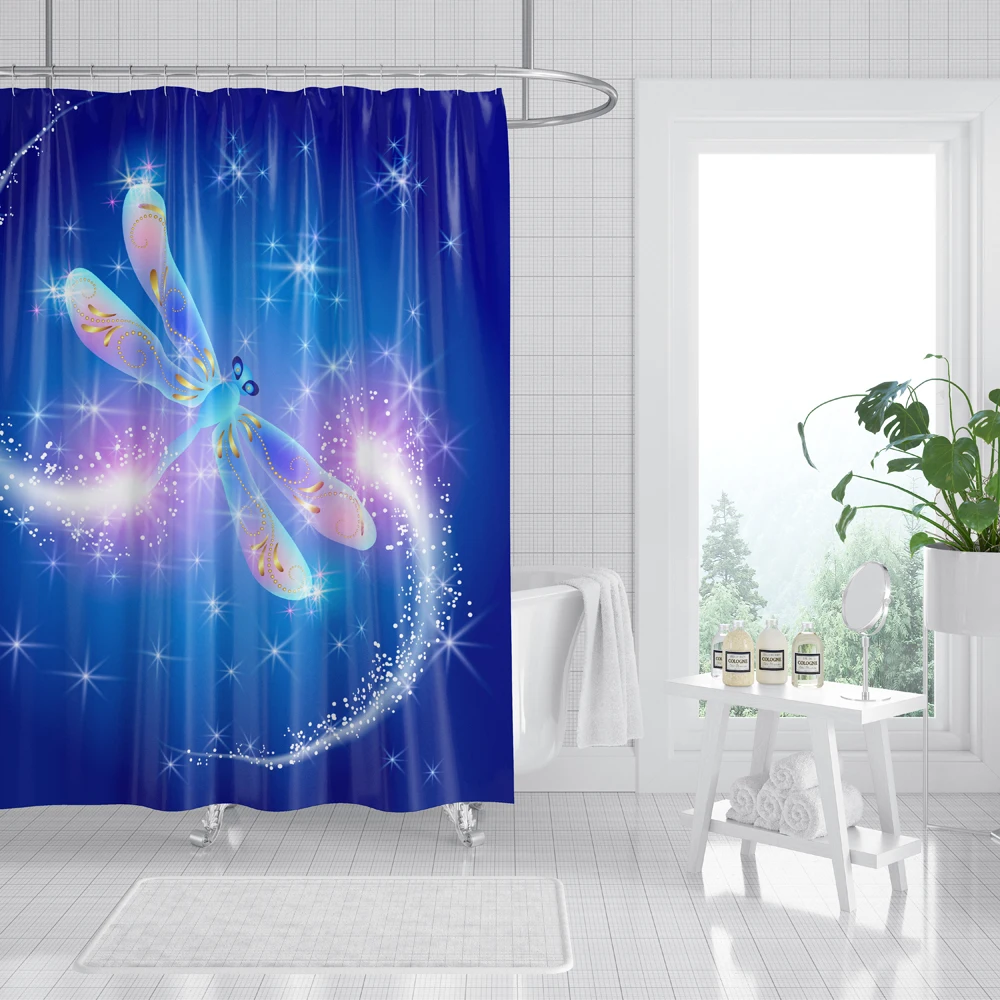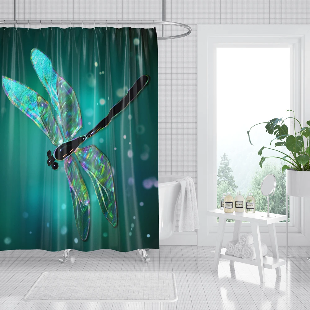 Занавеска для душа с 3D рисунком бабочек и стрекоз, занавеска для ванной из полиэстера, водонепроницаемая декоративная занавеска из ткани