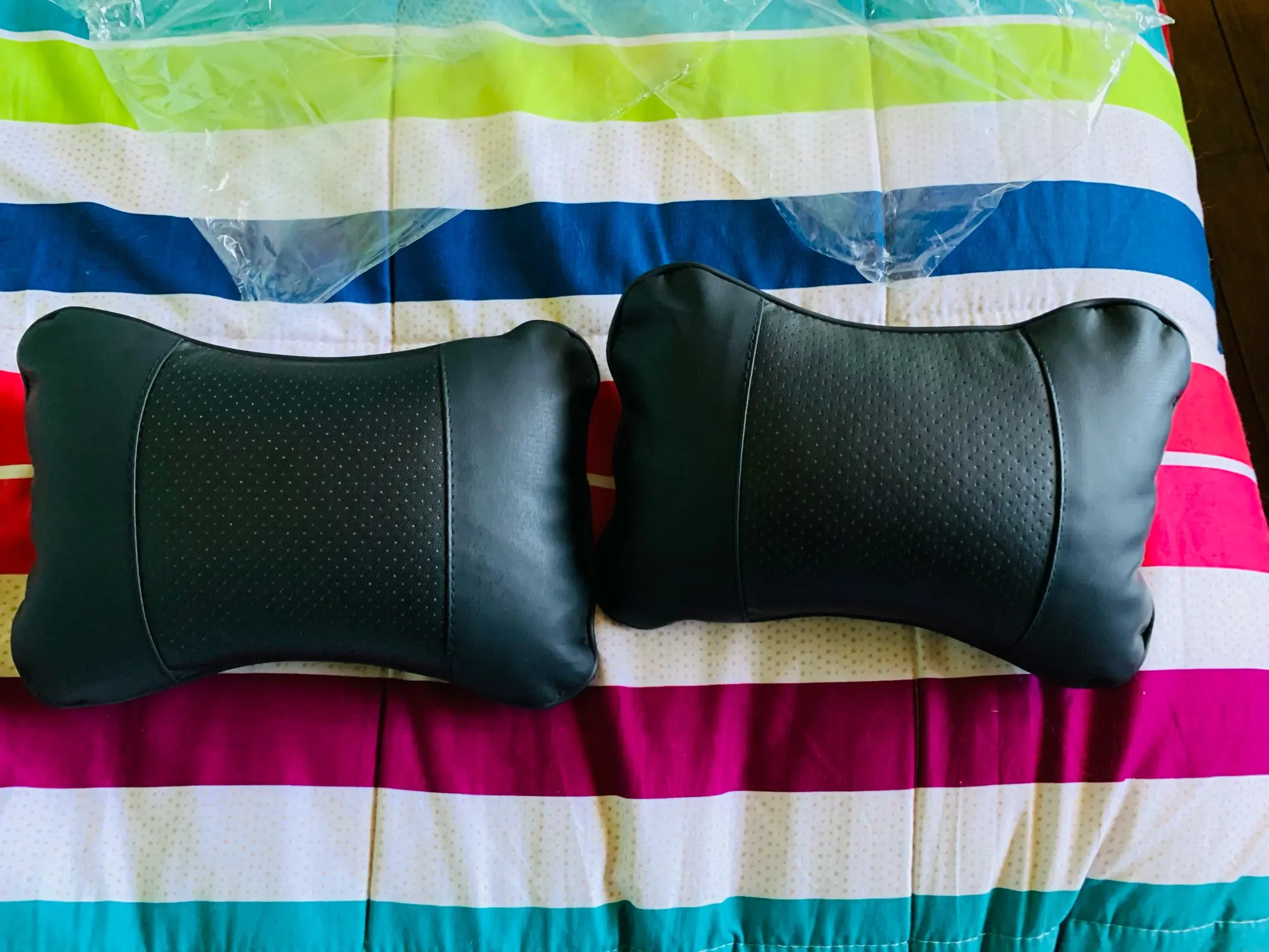 Подголовники соответствуют своему описанию. Обратная сторона бежевого цвета. В Шкоду Октавия стали как родные. Обеспечивают дополнительный комфорт при движении. Доставку задержали на 3 дня. Трек отслеживался. Рекомендую к покупке.