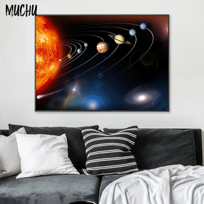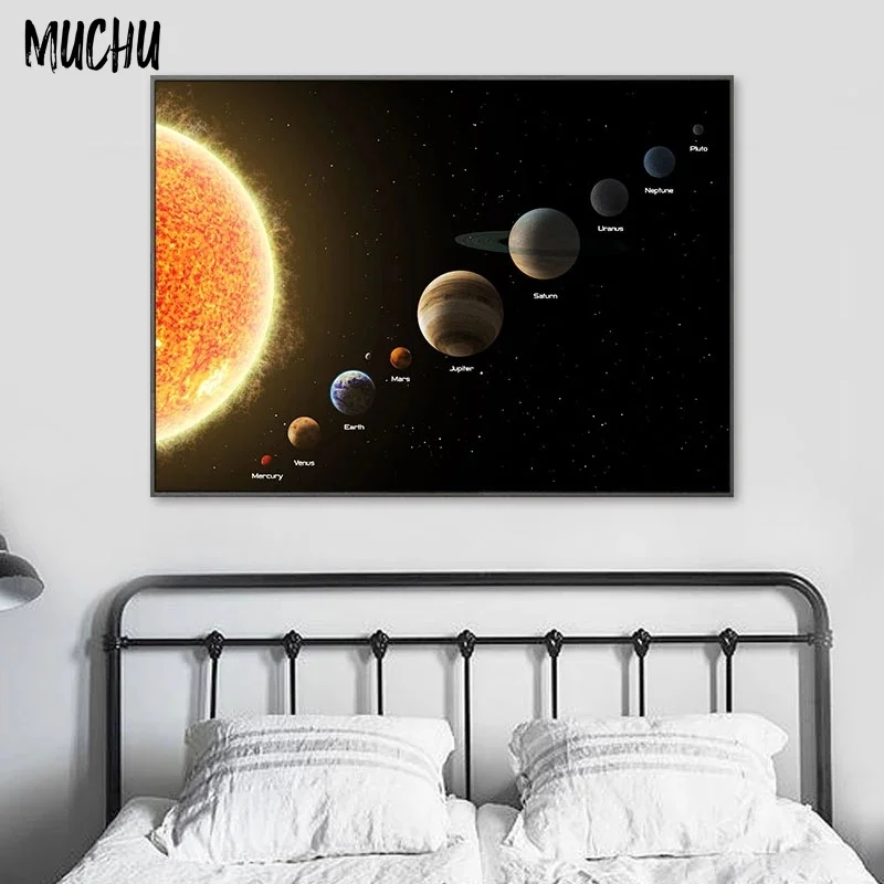 Плакаты и принты с солнечной системой, настенная Картина на холсте с изображением космоса, Вселенной, науки, украшение для детской комнаты
