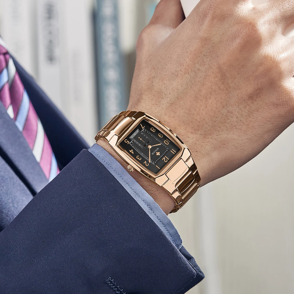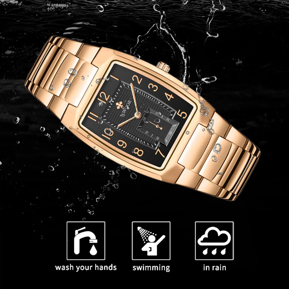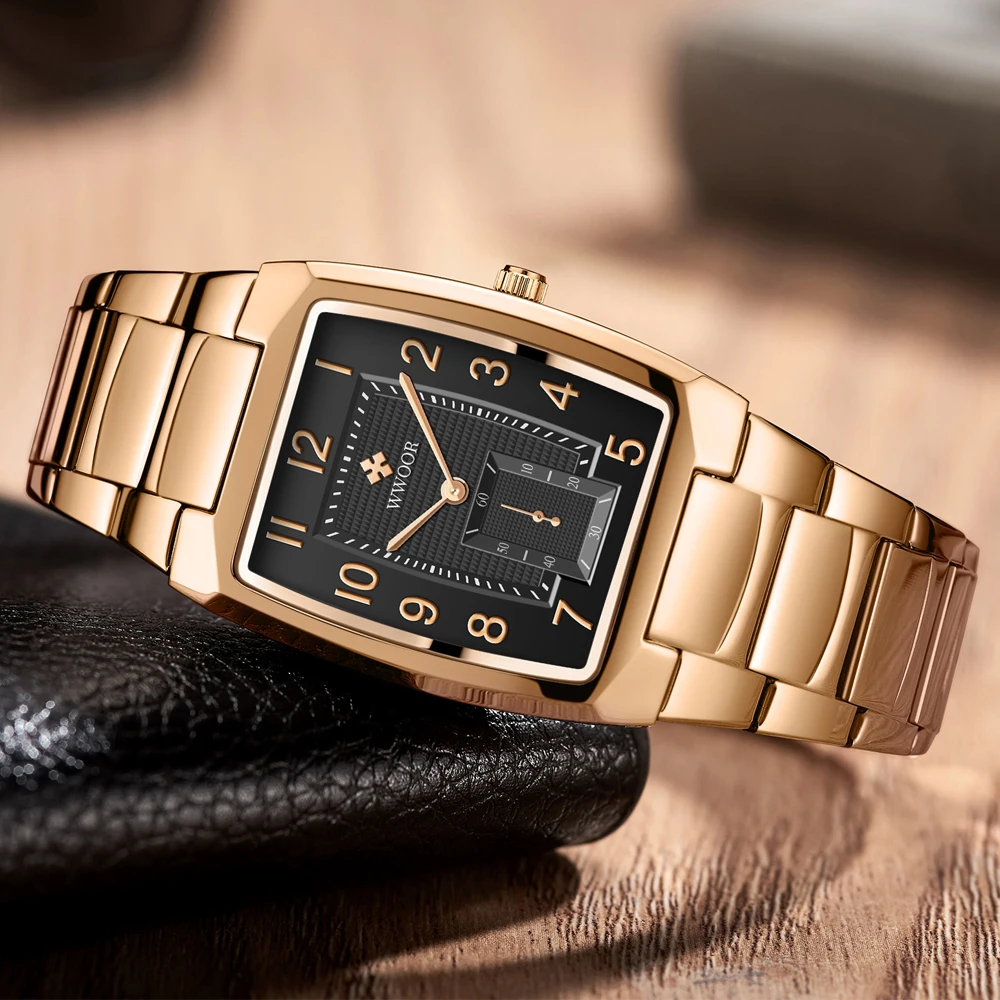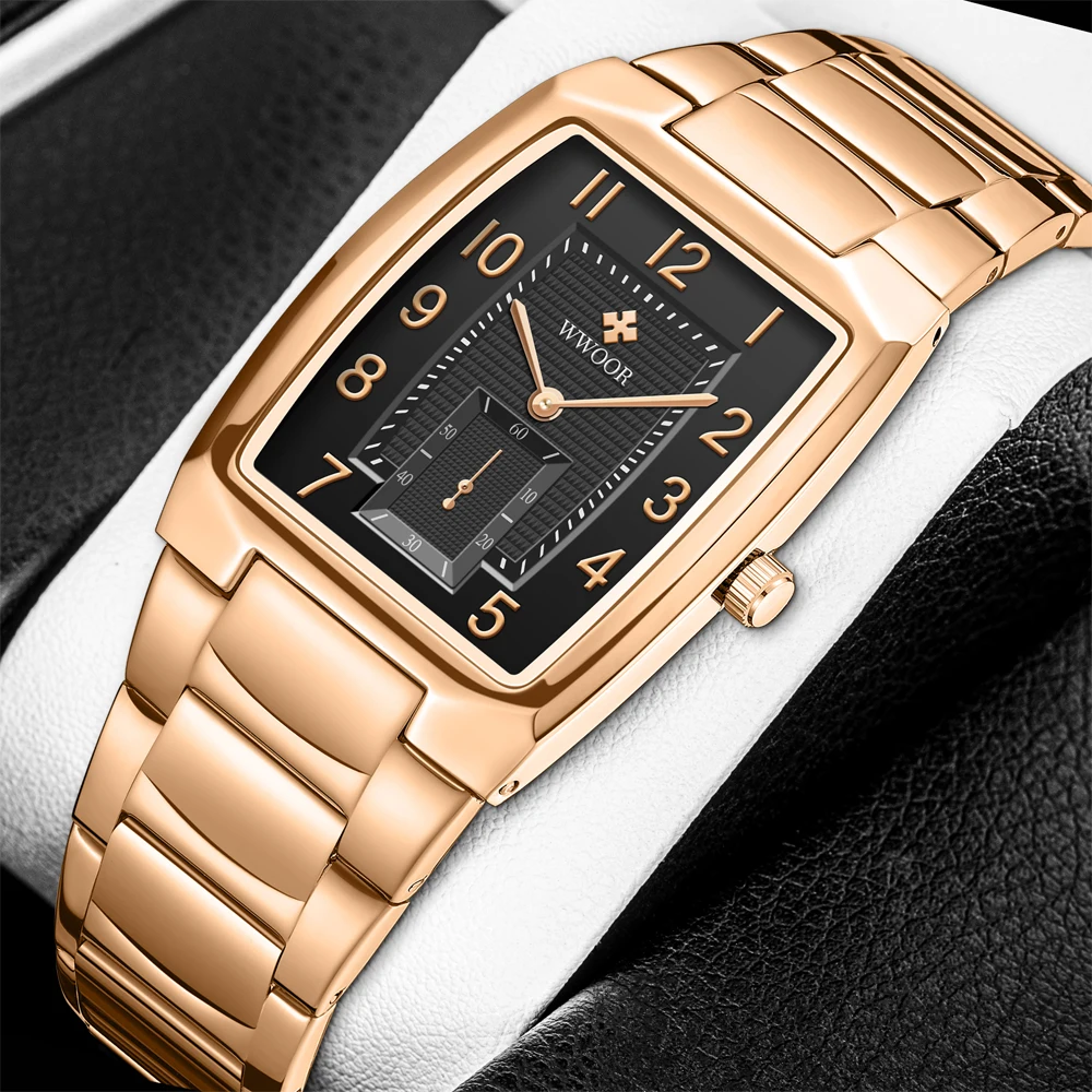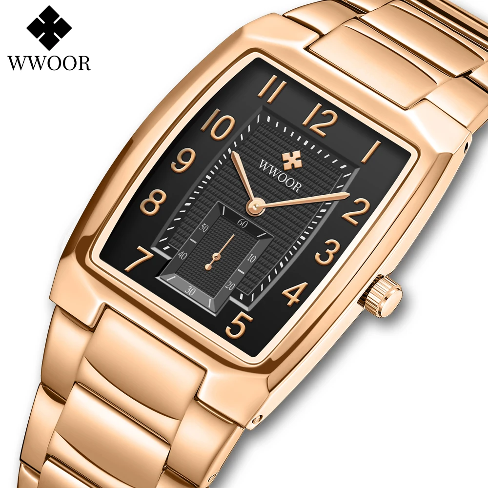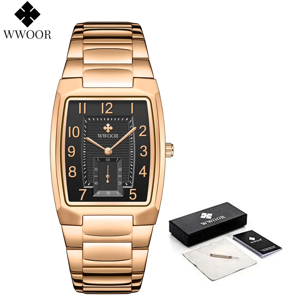 Часы наручные WWOOR Мужские кварцевые, брендовые Роскошные модные, водостойкие квадратные, повседневные, 30 атм