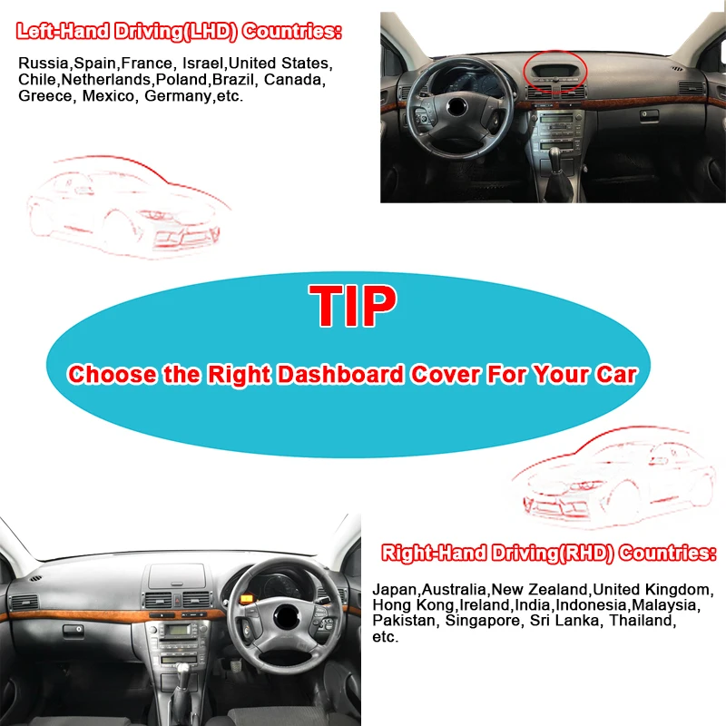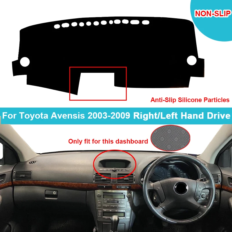 Чехол для приборной панели автомобиля, коврик для приборной панели для Toyota Avensis 2003-2009 с часами, фланелевый замшевый полиэстеровый ковер, накидка, защитный ковер